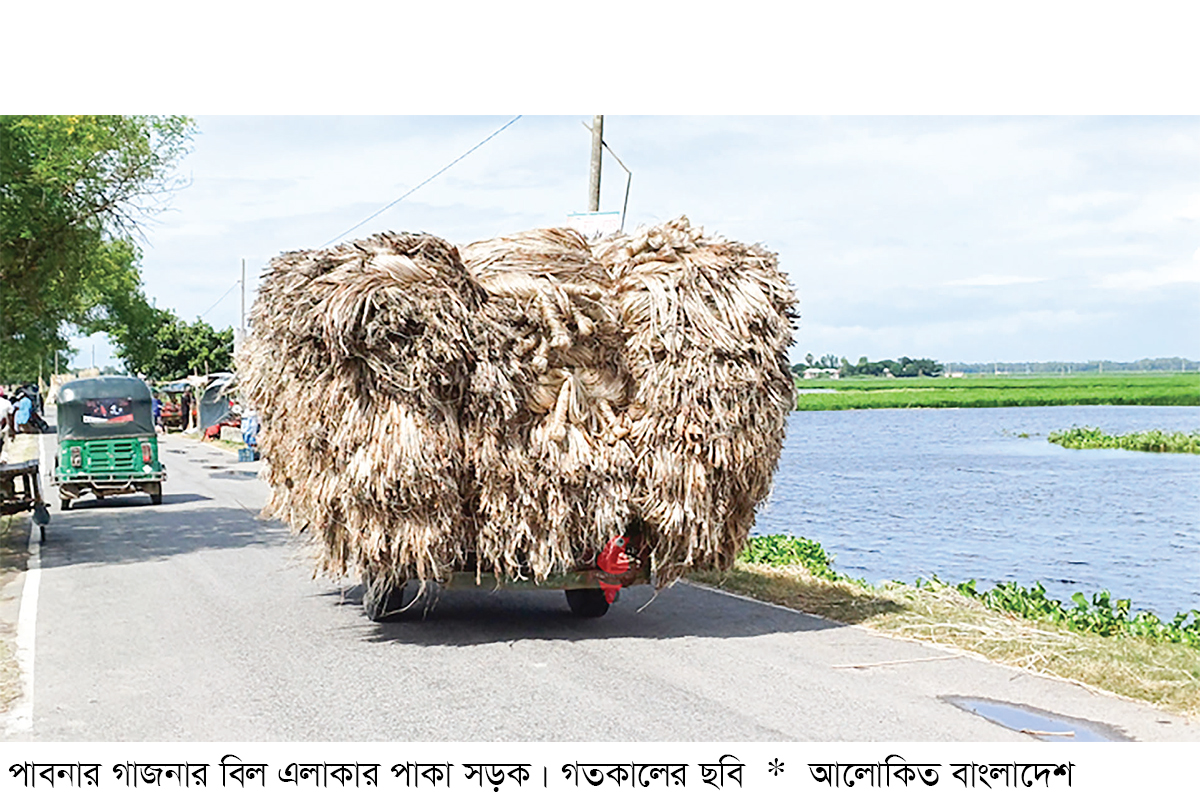 পাবনার গাজনার বিল এলাকায় সড়ক যোগাযোগ ব্যবস্থার উন্নয়নে বদলে গেছে ১০ গ্রামের চিত্র। প্রশস্ত আধুনিক সড়কে গাজনার বিলের প্রায় সাড়ে চার হাজার হেক্টর জমির ফসল পরিবহন ও বাজারজাতকরণের ভোগান্তি কমেছে কৃষকের। সহজেই বাজারজাত করা যাচ্ছে ফসল। এতে কৃষকের উৎপাদিত্র পণ্যের ন্যায্যমূল্য নিশ্চিতের পাশাপাশি ইতিবাচক প্রভাব পড়ছে এলাকার কৃষি ও আর্থ-সামাজিক ব্যবস্থায়। স্থানীয় সরকার প্রকৌশল অধিদপ্তরের (এলজিইডি) প্রচেষ্টায় ১০ কোটি টাকা ব্যয়ে নির্মিত ১৮ ফুট প্রশস্ত প্রায় পাঁচ কিলোমিটার দৈর্ঘ্যরে পাকা সড়কে বদলে গেছে ১০ গ্রামের চিত্র।