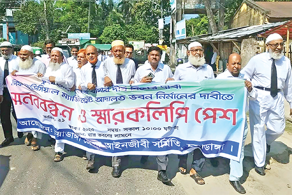 চুয়াডাঙ্গায় চিফ জুডিসিয়াল ম্যাজিস্ট্রেট আদালত ভবন নির্মাণের দাবিতে গতকাল মানববন্ধন ও স্মারকলিপি পেশ করেন আইনজীবীরা। জেলা আইনজীবী সমিতি ভবনের সামনে এ কর্মসূচি পালিত হয় * আলোকিত বাংলাদেশ