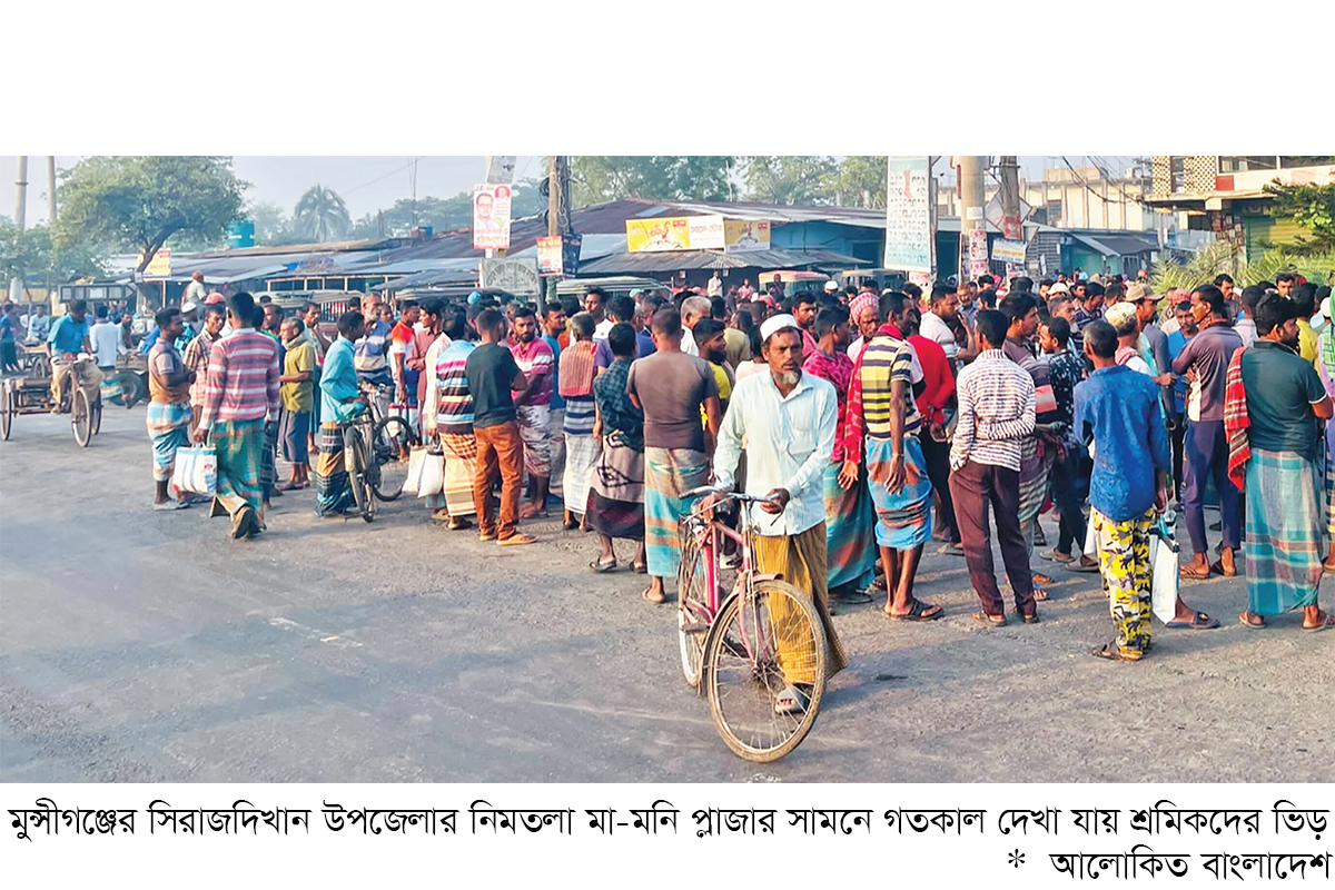 মুন্সীগঞ্জের সিরাজদিখানে আলু রোপণ মৌসুমকে কেন্দ্র করে জমে উঠেছে শ্রমবাজার। গতকাল সোমবার সিরাজদিখান উপজেলার নিমতলা মা-মনি প্লাজার সামনে দেখা যায় শ্রমিকদের ভিড়। শ্রমিকদের হাস্যোজ্জ্বল মুখই বলে দিচ্ছিল, চলতি সময়ে শ্রমবাজার কতোটা চাঙা। বর্ষা মৌসুম শেষ হওয়ায় আলু রোপণের প্রস্তুতিতে ব্যস্ত সময় পার করছেন কৃষকরা। আলু রোপণের জন্য জমি প্রস্তুত করতে বেড়েছে শ্রমিকের চাহিদাও। ফলে সিরাজদিখান উপজেলার বিভিন্ন স্থান থেকে কৃষকরা নিমতলাতে ক্রমিক নিতে আসেন। কৃষিপ্রধান এ অঞ্চলে মৌসুমভিত্তিক শ্রমচাহিদা বেড়ে যাওয়ায় এতে সন্তুষ্ট শ্রমিকরাও। প্রতিদিন সকালের জমজমাট এই শ্রমবাজার সিরাজদিখানের কৃষি অর্থনীতিতে ইতিবাচক গতি যোগ করছে। নেত্রকোনা থেকে আগত শ্রমিক হোসাইন জানান, আলু রোপণ মৌসুমে কাজের সুযোগ এবং মজুরি দুটোই তুলনামূলকভাবে ভালো থাকে। এখন বাজারে আমাদের ৫০০-৫৫০ করে নেয়। তবে কিছুদিন পর আলু রোপণ পুরো দমে শুরু হলে বাজারটা আরও একটু ভালো হবে।