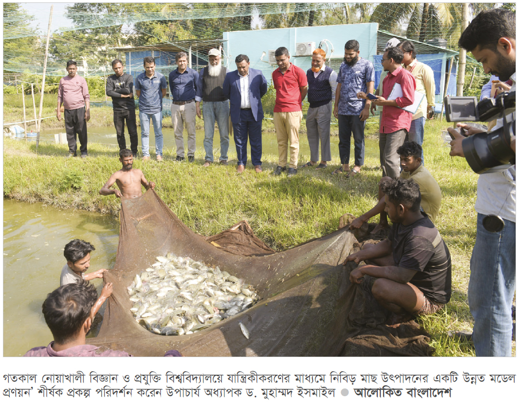 নোয়াখালী বিজ্ঞান ও প্রযুক্তি বিশ্ববিদ্যালয়ে (নোবিপ্রবি) ‘যান্ত্রিকীকরণের মাধ্যমে নিবিড় মাছ উৎপাদনের একটি উন্নত মডেল প্রণয়ন’ শীর্ষক প্রকল্প পরিদর্শন করেছেন উপাচার্য অধ্যাপক ড. মুহাম্মদ ইসমাইল। গতকাল মঙ্গলবার ফিশারিজ অ্যান্ড মেরিন সায়েন্স বিভাগের অধ্যাপক ড. আবদুল্লাহ-আল মামুনের তত্ত্বাবধানে বিশ্ববিদ্যালয় ক্যাম্পাসে পরিচালিত মাছ চাষের ক্ষেত্রে এরেটরের ব্যবহার নির্ভর এ প্রকল্প পরিদর্শন করেন তিনি।