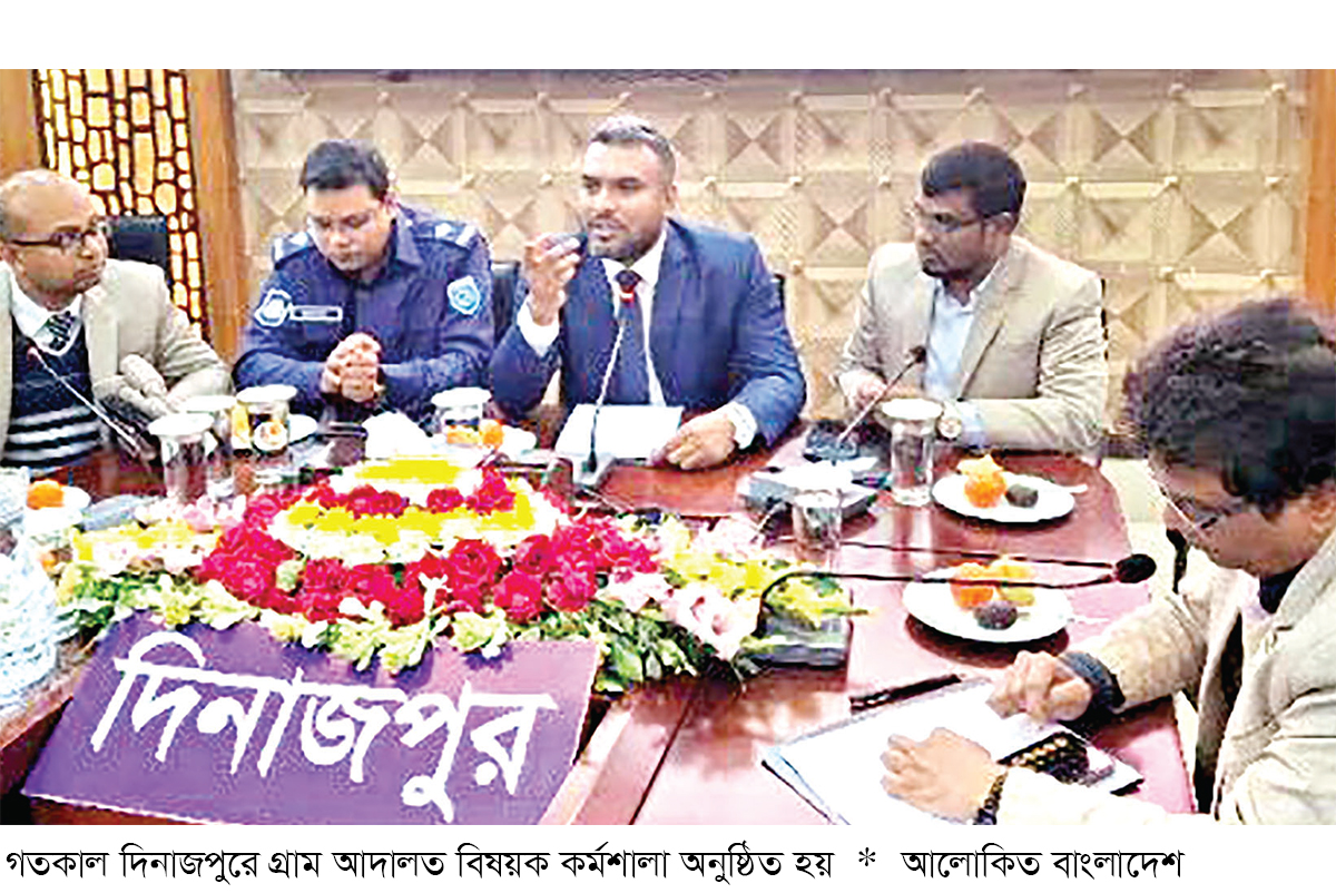 দিনাজপুরে দিনব্যাপী গ্রাম আদালত সম্পর্কে ব্যাপক সচেতনতা বৃদ্ধিতে স্থানীয় সরকারি ও বেসরকারি প্রতিষ্ঠানসমূহের ভূমিকা শীর্ষক কর্মশালা অনুষ্ঠিত হয়েছে। গতকাল বুধবার দিনাজপুর জেলা প্রশাসনের আয়োজনে জেলা প্রশাসক সম্মেলন কক্ষ (কাঞ্চন-২) কর্মশালার উদ্বোধন করেন স্থানীয় সরকার বিভাগের উপ-পরিচালক রিয়াজ উদ্দিন।