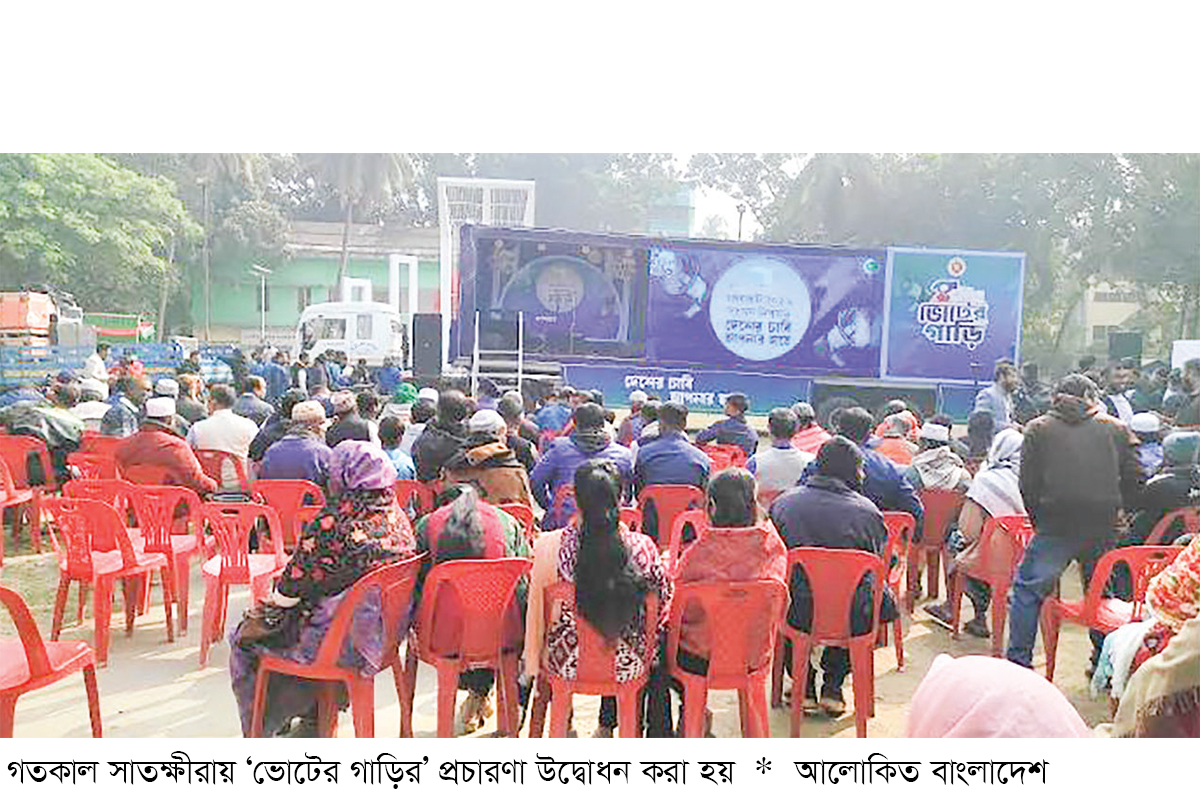 আসন্ন ত্রয়োদশ জাতীয় সংসদ নির্বাচন ও গণভোট উপলক্ষে ভোটারদের সচেতন ও উদ্বুদ্ধ করতে সাতক্ষীরায় শুরু হয়েছে ‘ভোটের গাড়ি’র প্রচারণা। গতকাল শুক্রবার সকালে সাতক্ষীরা শহীদ আব্দুর রাজ্জাক পার্কে জেলা তথ্য অফিসের আয়োজনে ‘ভোটের গাড়ি’র প্রচারণার আনুষ্ঠানিক উদ্বোধন করেন সাতক্ষীরা জেলা প্রশাসক মিজ আফরোজা আখতার।