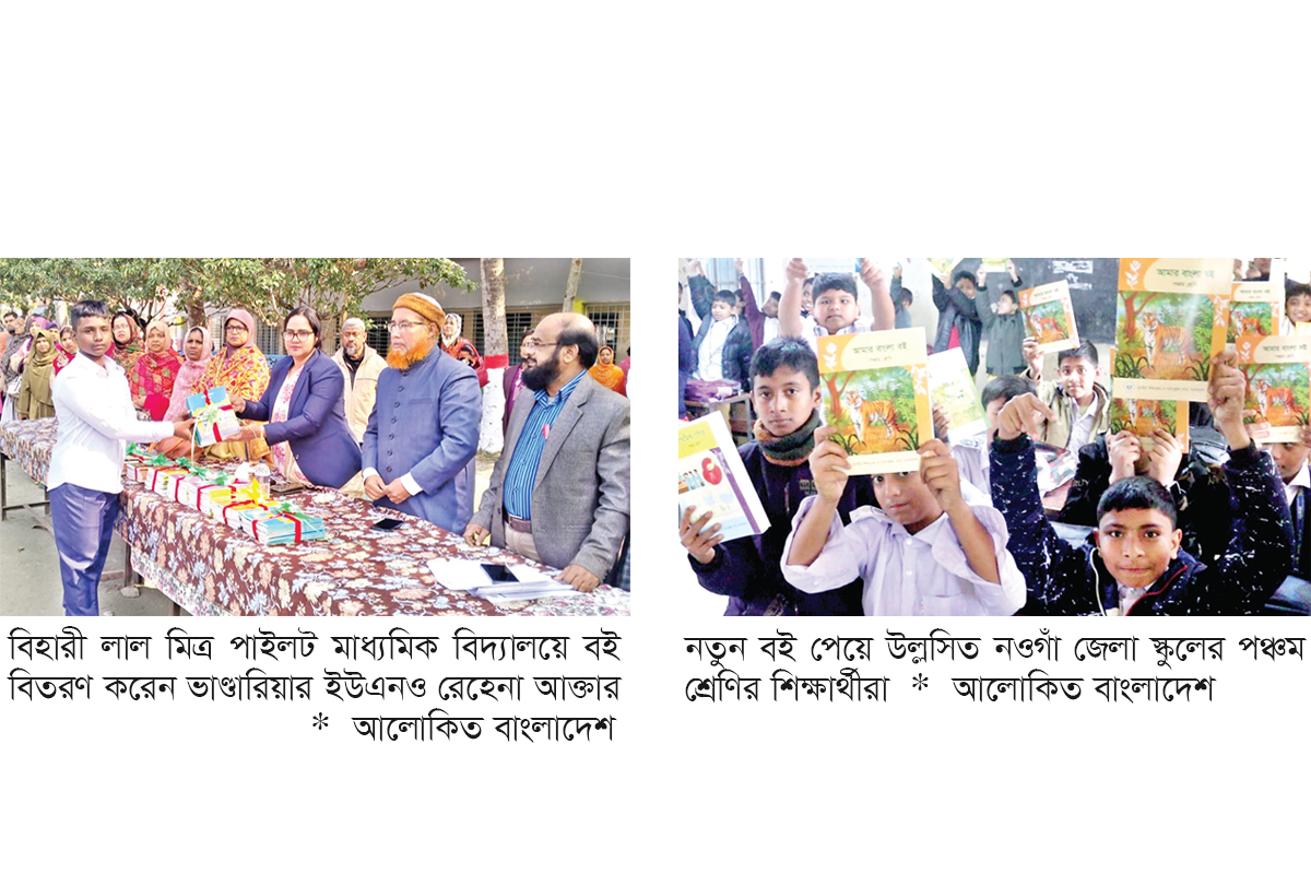 নওগাঁ : নওগাঁ জিলা স্কুল, নওগাঁ কেডি সরকারি উচ্চ বিদ্যালয় ও নওগাঁ সরকারি বালিকা উচ্চ বিদ্যালয়সহ জেলার বিভিন্ন উপজেলার শিক্ষা প্রতিষ্ঠানে নতুন বই বিতরণ কার্যক্রম শুরু হয়। সারিবদ্ধ ভাবে প্রতিটি শ্রেণিকক্ষে শিক্ষকরা শিক্ষার্থীদের মধ্যে বই বিতরণ করেন। নতুন বই পেয়ে শিক্ষার্থীরা উচ্ছ্বসিত, নতুন বইয়ের ঘ্রাণ ও হাতে বই পাওয়ার আনন্দ তাদের মধ্যে বাঁধভাঙা উল্লাস তৈরি করে। শিক্ষকরা শিক্ষার্থীদের হাতে নতুন বই তুলে দেন। এ সময় শিক্ষার্থীরা নতুন বইয়ের গন্ধ শুঁকে, পাতা উল্টে অনুভূতি প্রকাশ করেন। এটি তাদের পড়াশোনার প্রতি আগ্রহ আরও বাড়িয়ে তুলবে বলে জানায় শিক্ষার্থীরা। নওগাঁ জেলা প্রশাসক কার্যালয়ের শিক্ষা ও আইসিটি বিভাগ সূত্রে জানা যায়- মাধ্যমিক, মাদ্রাসা ও কারিগরি শিক্ষা প্রতিষ্ঠানে মোট বইয়ের চাহিদা ২৮ লাখ ৪৮ হাজার ৮৬৬টি। এর বিপরীতে পাওয়া গেছে ২০ লাখ ৬৮ হাজার ১৮০টি বই। তবে প্রাথমিক ও প্রাক-প্রাথমিক বইয়ের চাহিদা ১০ লাখ ৮৮ হাজার ৯৯৫টি। চাহিদা অনুযায়ী বই পাওয়া গেছে। নওগাঁ সরকারি বালিকা উচ্চ বিদ্যালয়ের ষষ্ঠ শ্রেণির অরিত্রা রায় জানায়- বছরের প্রথম দিন নতুন বই পাওয়ার যে আনন্দ তা বলে প্রকাশ করা সম্ভব না। বইয়ের গন্ধ অনেক ভালো লাগে। বার্ষিক পরীক্ষার পর বেশ কিছুদিন ছুটি পেয়েছিলাম। নতুন শ্রেণিতে নতুন বই, আবারও নতুন করে পড়াশোনা শুরু হলো।