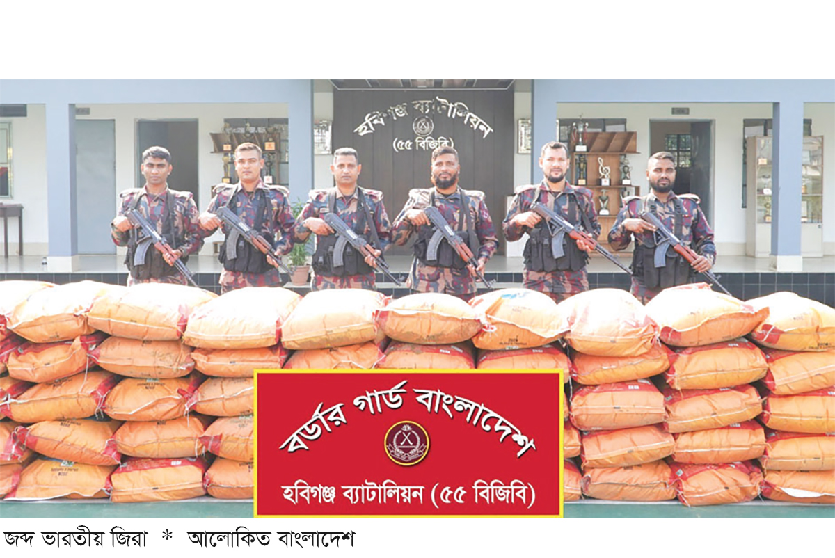 হবিগঞ্জ ব্যাটালিয়ন (৫৫ বিজিবি)-এর একটি টহলদল গোপন সংবাদেরভিত্তিতে অভিযান পরিচালনা করে, বালুভর্তি ট্রাক থেকে বিপুল পরিমাণ ভারতীয় জিরা জব্দ করেছে। যার বাজারমূল্য আনুমানিক ২৪ লাখ ৭৫ হাজার টাকা।