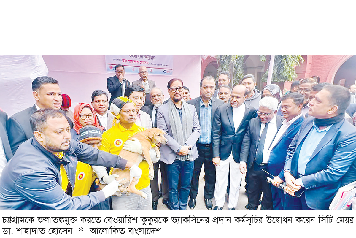 চট্টগ্রাম সিটি কর্পোরেশনের তত্ত্বাবধানে নগরীকে জলাতঙ্কমুক্ত করতে ১৫ হাজার বেওয়ারিশ কুকুরকে ভ্যাক্সিন প্রদানের কার্যক্রম শুরু হয়েছে। গতকাল সোমবার নগরীর বিভাগীয় কমিশনার কার্যালয়ের সামনে বেওয়ারিশ কুকুরদের ভ্যাক্সিন প্রদান কর্মসূচির উদ্বোধন করেন সিটি মেয়র ডা. শাহাদাত হোসেন। উদ্বোধনী বক্তব্যে মেয়র বলেন, ‘আমরা চট্টগ্রাম শহরকে একটি ক্লিন, গ্রিন, হেলদি অ্যান্ড সেফ সিটি হিসেবে গড়ে তুলতে কাজ করছি। নিরাপদ ও স্বাস্থ্যবান নগর গড়তে জনস্বাস্থ্যকে সর্বোচ্চ অগ্রাধিকার দেওয়া হয়েছে। বর্তমানে নগরীতে বেওয়ারিশ কুকুরের সংখ্যা বৃদ্ধি, কুকুরের কামড় এবং জলাতঙ্ক রোগ নিয়ে জনসাধারণের উদ্বেগ রয়েছে। এসব সমস্যা মানবিক ও বৈজ্ঞানিক পদ্ধতিতে সমাধান করতেই আমরা কুকুর নিধনের পথ পরিহার করে ভ্যাক্সিনেশনের উদ্যোগ নিয়েছি।’ মেয়র জানান, পরিবেশগত ও আইনগত সীমাবদ্ধতার কারণে কুকুর নিধন সম্ভব নয়। এ কারণে ভ্যাক্সিনেশনের মাধ্যমেই টেকসই সমাধান নিশ্চিত করা হচ্ছে। চলতি মাসের নির্ধারিত ছয় দিনের কর্মসূচিতে নগরীর ৪১টি ওয়ার্ডে পর্যায়ক্রমে প্রায় ১৫ হাজার কুকুরকে জলাতঙ্কের টিকার আওতায় আনা হবে। তিনি বলেন, ‘কোনো একটি এলাকায় যদি অন্তত ৭০ শতাংশ কুকুর ভ্যাক্সিনেশনের আওতায় আসে, তবে সেখানে ‘হার্ড ইমিউনিটি’ তৈরি হয়। এর ফলে জলাতঙ্ক ভাইরাসের বিস্তার কার্যত বন্ধ হয়ে যায়। এটিই আমাদের মূল লক্ষ্য।’