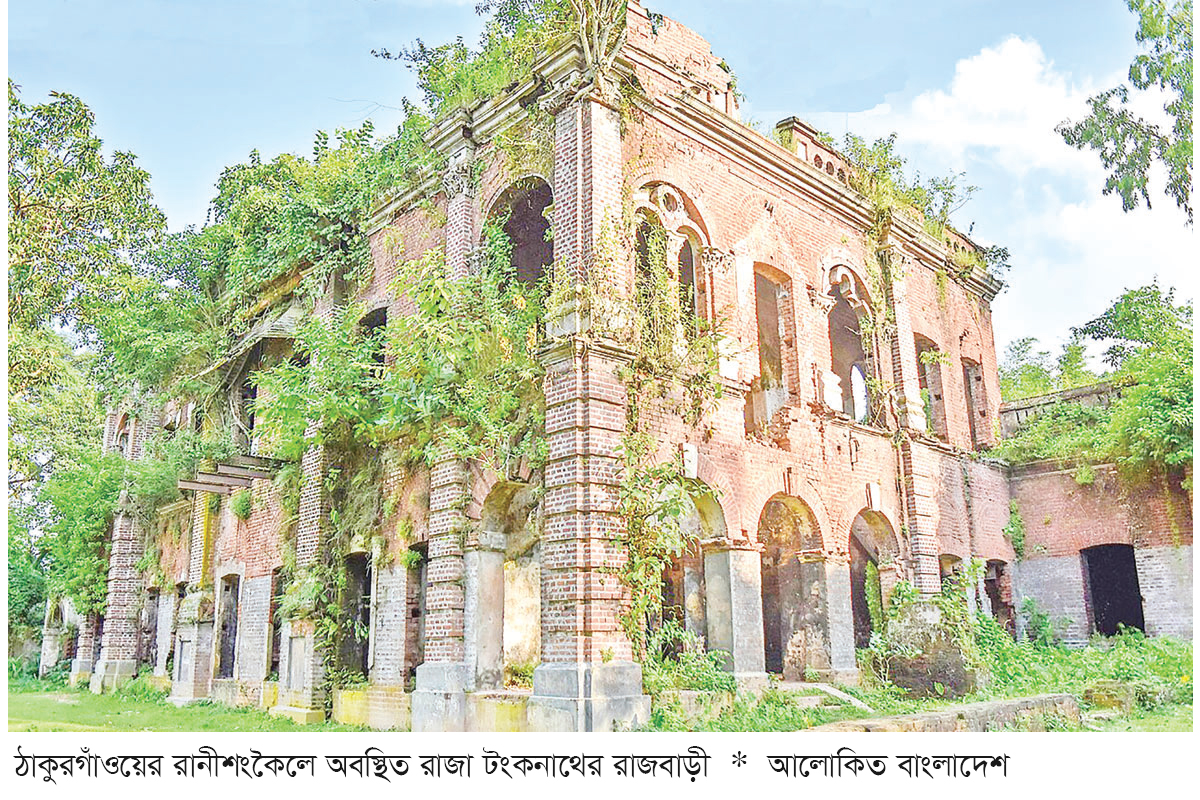 রাণীশংকৈল উপজেলার পৌর শহর থেকে মাত্র ১.৩ কিলোমিটার পূর্বে বাচোর ইউনিয়নের কুলিক নদীর তীর ঘেঁষা প্রায় ১০ একর জমির ওপর রাজা টংকনাথের রাজবাড়িটি অবস্থিত। উপজেলা শহর থেকে মাত্র ১০ টাকা দিয়ে ভ্যান, কিংবা ব্যাটারি চালিত অটো যোগে পৌঁছা যাওয়া যায় রাজা টংকনাথের রাজবাড়িতে। রাজবাড়িরটির নির্মাণ শৈলী অপরুপ কারুকার্যময় বেস্টিত। রাজবাড়ির মেঝে ছিল মার্বেল পাথরের তৈরি। এক সময়ের জাঁকজমকপূর্ণ কারুকার্জে খচিত প্রাচীন এই রাজভবনটিতে এখনও অনেক কারুকাজ করা দেয়াল। অবশিষ্ট আছে সেই সাথে রয়েছে বিশাল আকৃতির মোটা ধরনের রেলপথের লোহার সড়। রাজবাড়িটির ভিতরের পূর্ব পাশে একটি অন্ধরমহল রয়েছে। রাজবাড়ির পশ্চিমদিকে রয়েছে সিংহদরজা। অপরপ্রান্তে দুটি দীঘি রয়েছে। বিশাল এক সিংহ দরজা দিয়ে রাজবাড়ির ভেতরে প্রবেশ করতে হয়। রাজবাড়িসংলগ্ন উত্তর-পূর্ব কোণে রয়েছে কাছারিবাড়ি। লাল রঙের দালানটি স্থাপত্যশৈলীতে আধুনিকতার পাশাপাশি ভিক্টোরিয়ান অলঙ্করণের ছাপ সুস্পষ্ট। উনবিংশ শতাব্দীর শেষ ভাগে রাজবাড়িটি নির্মিত হয়। রাজা টংকনাথের পিতা বুদ্ধিনাথের আমলেই রাজবাড়ি নির্মাণ কাজ শুরু হয়। বুদ্ধিনাথের মৃত্যুর পরে রাজা টংকনাথ রাজবাড়ির অসমাপ্ত কাজ শেষ করেন। ইতিহাস থেকে জানা যায়, রাজা টংকনাথের পূর্ব-পুরুষদের কেউ জমিদার ছিলেন না। বর্তমানে রাণীশংকৈল উপজেলা শহর হতে ৭ কিলোমিটার পূর্বে কাতিহার নামক জায়গায় গোয়ালা বংশীয় নিঃসন্তান এক জমিদার বাস করতেন। জমিদারের মন্দিরে সেবায়েত হিসেবে কাজ করতেন টংকনাথের পিতা বুদ্ধিনাথ। গোয়ালা জমিদার ভারত এর কাশি যাওয়ার সময় তাম্রপাতে দলিল করে যান যে, তিনি ফিরে না এলে মন্দিরের সেবায়েত বুদ্ধিনাথ জমিদারির মালিক হবেন। গোয়ালা জমিদার ফিরে না আসায় বুদ্ধিনাথ জমিদারির মালিক হন। তবে অনেকে মনে করেন এই ঘটনা বুদ্ধিনাথ দু-এক পুরুষ পূর্বেরও হতে পারে। রাজা টংকনাথ চৌধুরী খুব বড় মাপের জমিদার না হলেও তার আভিজাত্যের কমতি ছিল না। জমিদার বুদ্ধিনাথের দ্বিতীয় ছেলে টংকনাথ তৎকালীন ব্রিটিশ সরকারের আস্থা অর্জন করার জন্য মালদুয়ার স্টেট গঠন করেন। বিভিন্ন সময় সমাজসেবামূলক কাজের জন্য ১৯২৫ সালের ১৮ নভেম্বর তৎকালীন ব্রিটিশ গভর্নর হাউসে টংকনাথ চৌধুরীকে ব্রিটিশ সরকার চৌধুরী উপাধিতে ভূষিত করেন। কথিত আছে, টংকনাথের আমন্ত্রণে তৎকালীন বড়লাট এবং দিনাজপুরের মহারাজা গিরিজনাথ রায় রাণীশংকৈলে এলে আমন্ত্রিত অতিথিদের টাকার নোট পুড়িয়ে রীতিমতো রাজকীয় অভ্যর্থনা ও আপ্যায়ন করান এবং পর্যাপ্ত স্বর্ণালংকার উপহার দেন। এর ফলে তৎকালীন ব্রিটিশ সরকারের কাছ থেকে চৌধুরী উপাধি এবং দিনাজপুরের মহারাজা গিরিজনাথ রায়ের কাছ থেকে রাজা উপাধি পান। পরবর্তীতে দ