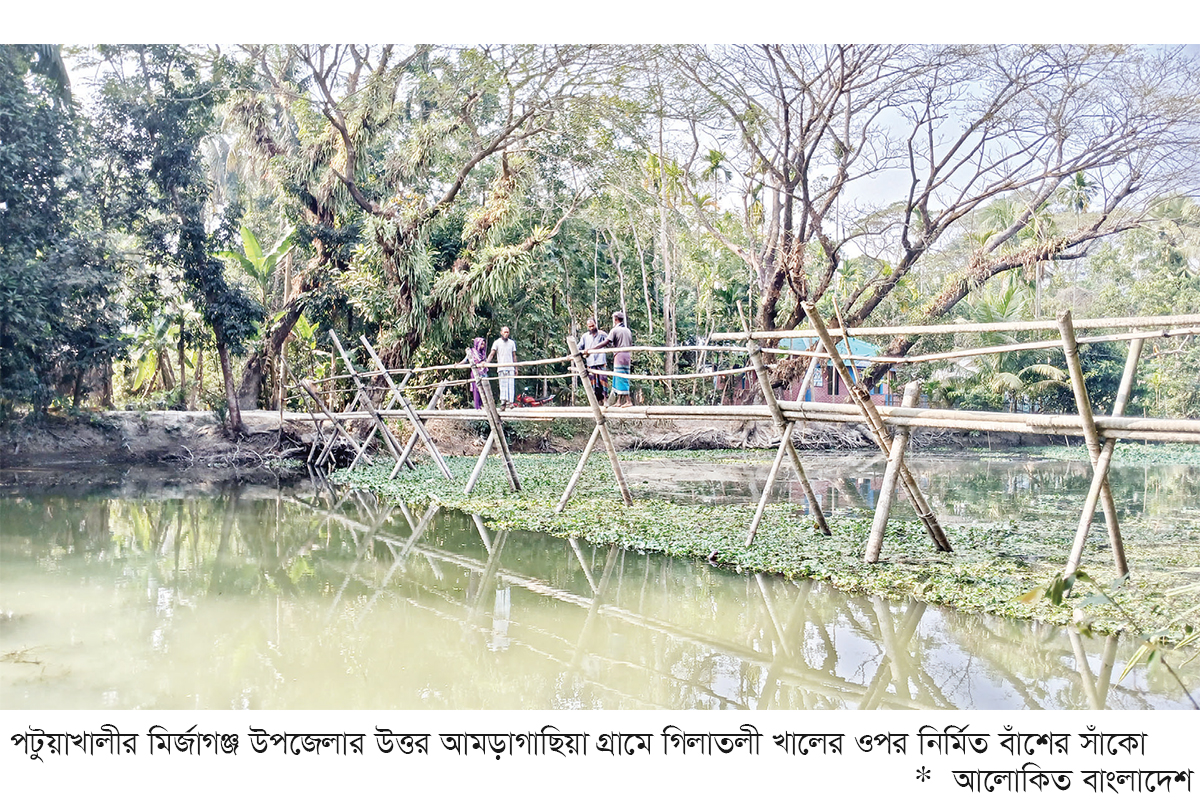 পটুয়াখালীর মির্জাগঞ্জ উপজেলার উত্তর আমড়াগাছিয়া গ্রামের গিলাতলী খালের দুই পাড়ে ৬০০ পরিবারে প্রায় ৩ হাজার লোক বসবাস করেন। তাদের চলাচলের একমাত্র ভরসা একটি নড়বড়ে লম্বা বাঁশের সাঁকো। তাদের এই সাঁকো দিয়েই জীবনের ঝুঁকি নিয়ে প্রতিনিয়ত যাতায়াত করতে হচ্ছে।