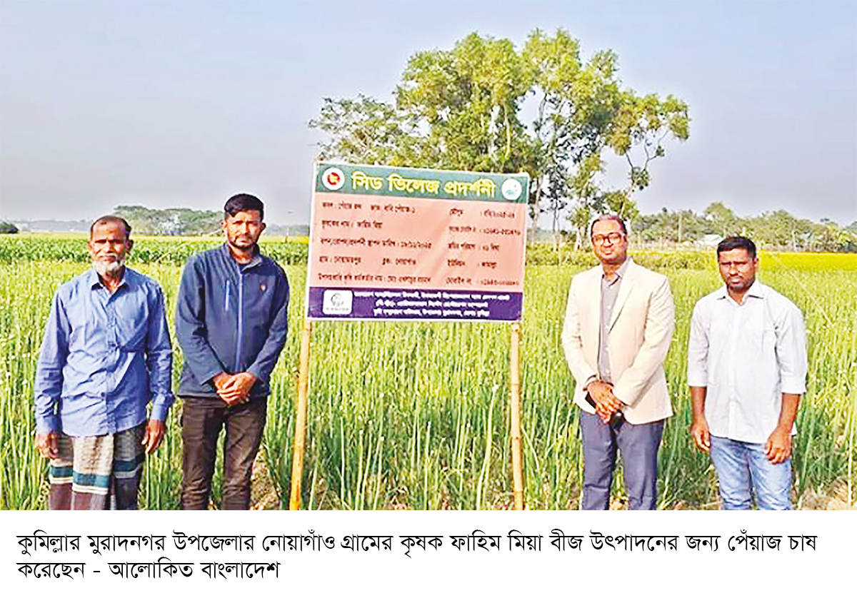 বাংলাদেশ টেকসই পুনরুদ্ধার জরুরি প্রস্তুতি ও প্রতিক্রিয়া প্রকল্প (বি-স্ট্রং) কৃষি ব্যবস্থা পুনরুদ্ধার প্রকল্পের আওতায় কুমিল্লার মুরাদনগর উপজেলায় প্রথমবারের মতো কালো সোনা (পেঁয়াজ বীজ) উৎপাদন করছে। উপজেলার কামাল্লা ইউনিয়নের নোয়াগাঁও গ্রামের একজন প্রগতিশীল কৃষক ফাহিম মিয়া তার ২৫ শতাংশ জমিতে এই প্রথমবারের মতো পেঁয়াজের বীজ উৎপাদনের জন্য কালো সোনা পেঁয়াজ চাষ করেছেন। উপজেলা কৃষি অফিস সূত্রে জানা যায়, মুরাদনগরে এই প্রথম পেঁয়াজের বীজ উৎপাদনের জন্য কালো সোনা পেঁয়াজ চাষ করা হয়েছে।