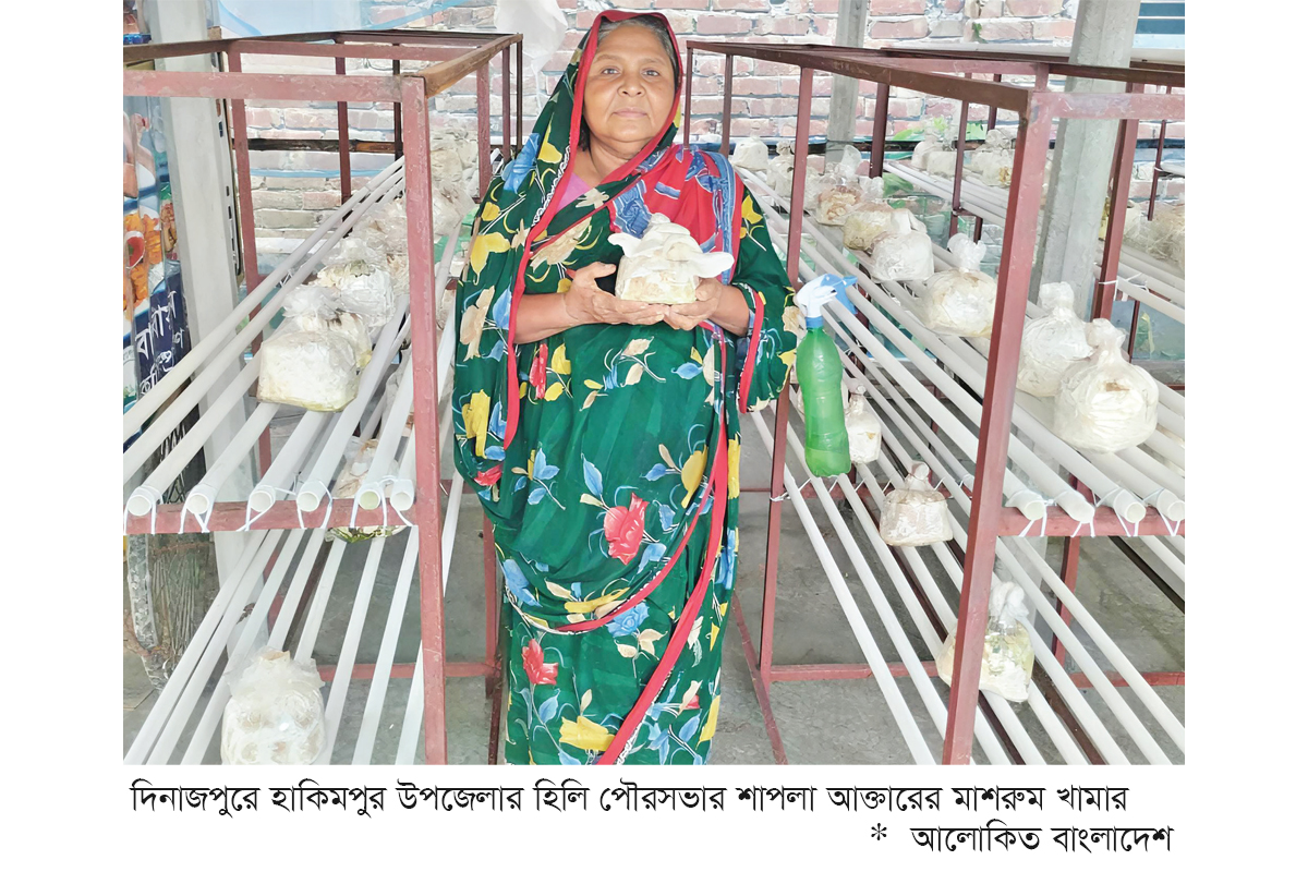 দিনাজপুরে হাকিমপুর উপজেলা হিলি পৌরসভা এলাকায় মাশরুম চাষ করে নিজেকে সফল নারী উদ্যোক্তা হিসেবে গড়ে তুলেছেন গৃহবধূ শাপলা আক্তার। তিনি অন্যান্য নারীদের স্বাবলম্বী করতে মাশরুম চাষের প্রশিক্ষণ দিচ্ছেন। দিনাজপুরের হাকিমপুর উপজেলার হিলি পৌরসভার দক্ষিণ বাসুদেবপুর গ্রামের গৃহবধূ শাপলা আক্তার (৩৪) এর সঙ্গে তার মাশরুম চাষের সফলতা নিয়ে কথা হয়।