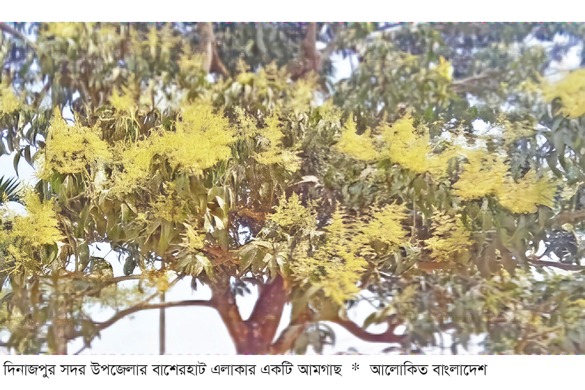 দিনাজপুরে শীতের প্রভাব কমতে শুরু করেছে। ধীরে ধীরে তাপমাত্রা বাড়ার পাশাপাশি কুয়াশাও কমছে। শীত ও কুয়াশার শেষে আম গাছের কচি ডগা ভেদ করে বের হতে শুরু করেছে মুকুল। গাছে গাছে আমের মুকুল জানান দিচ্ছে ঋতুরাজ বসন্ত এসে গেছে। জেলার আম গাছের কচি শাখায় শোভা পাচ্ছে মুকুল। আমের শাখায় শাখায় উড়ে বেড়াচ্ছে মৌমাছি। তারা আশপাশ মুখরিত করে তুলেছে। আম গাছে মুকুল আসার আগ থেকেই পরিচর্যা শুরু করেছেন স্থানীয় চাষিরা। আম বাগানগুলোতে ব্যস্ত সময় পার করছেন তারা। মুকুল টিকিয়ে রাখতে প্রতিনিয়ত বালাইনাশক প্রয়োগ করছেন চাষিরা।