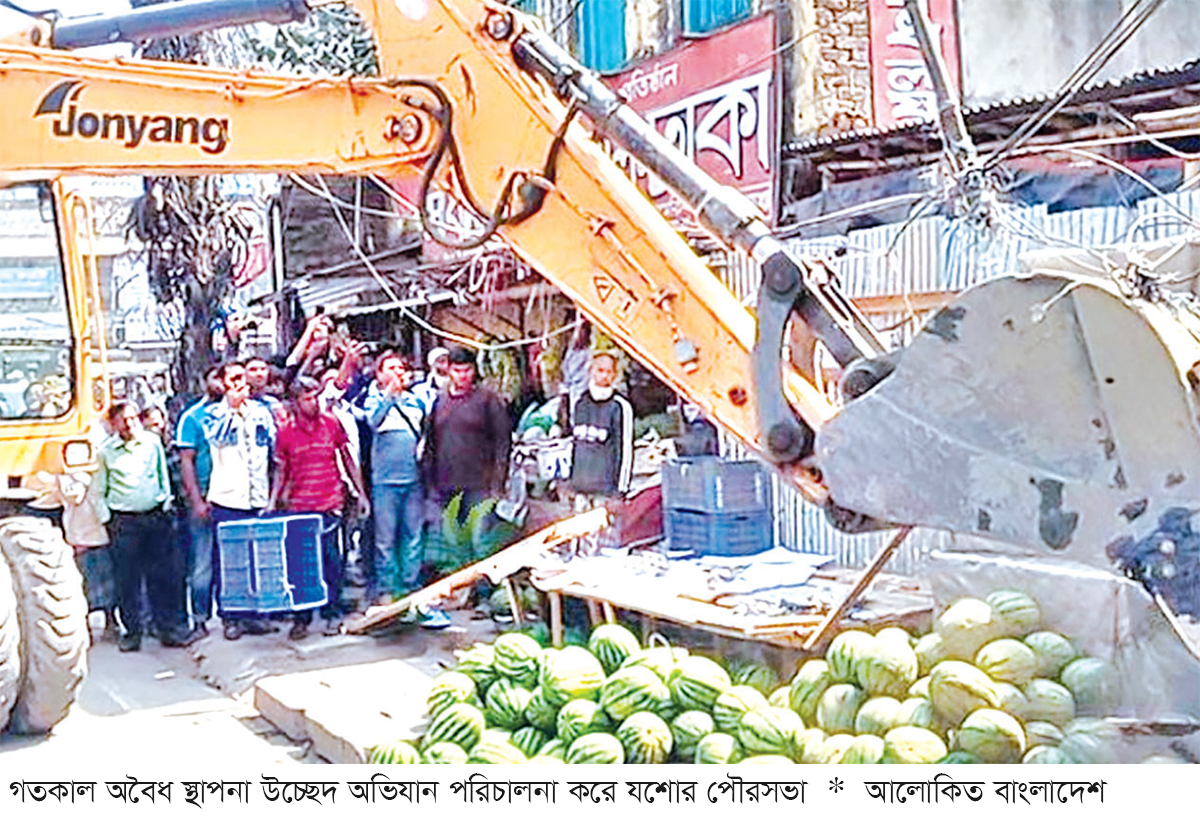 পবিত্র রমজান উপলক্ষ্যে যশোর শহরকে যানজটমুক্ত রাখা এবং সাধারণ মানুষের চলাচল নির্বিঘ্ন করতে ফুটপাত থেকে অবৈধ স্থাপনা উচ্ছেদ অভিযান শুরু করেছে যশোর পৌরসভা। গতকাল বৃহস্পতিবার বেলা ১২টা থেকে দুপুর ২টা পর্যন্ত শহরের চৌরাস্তা মোড় থেকে অভিযান শুরু হয়ে এমকে রোড হয়ে দড়াটানা পর্যন্ত এ অভিযান পরিচালিত হয়। অভিযানকালে সড়ক ও ফুটপাত দখল করে গড়ে ওঠা অবৈধ স্থাপনা, অস্থায়ী দোকানপাট ও সাইনবোর্ড অপসারণ করা হয়। প্রথম দফার অভিযানে ফুটপাত থেকে শতাধিক দোকান উচ্ছেদ করা হয়েছে। তবে অভিযানের খবর পেয়ে অনেক ব্যবসায়ী আগেই তাদের দোকান সরিয়ে নেন। দ্বিতীয় দফায় দড়াটানা হয়ে মুজিবসড়ক ও প্যারিস রোড এলাকায় অভিযান পরিচালনার পরিকল্পনা রয়েছে বলে জানিয়েছে কর্তৃপক্ষ। অভিযানে নেতৃত্ব দেন যশোর পৌরসভার নির্বাহী কর্মকর্তা জায়েদ হোসেন। তিনি বলেন, ‘শহরের ক্রমবর্ধমান যানজট নিরসন এবং পৌরবাসীর স্বাভাবিক চলাচলের পথ সুগম করাই এই অভিযানের মূল লক্ষ্য। বিশেষ করে রমজান মাসে শহরের শৃঙ্খলা ও সৌন্দর্য বজায় রাখতে আমরা বদ্ধপরিকর। ফুটপাত দখল করে জনদুর্ভোগ সৃষ্টি কোনোভাবেই বরদাশত করা হবে না। এ অভিযান অব্যাহত থাকবে।