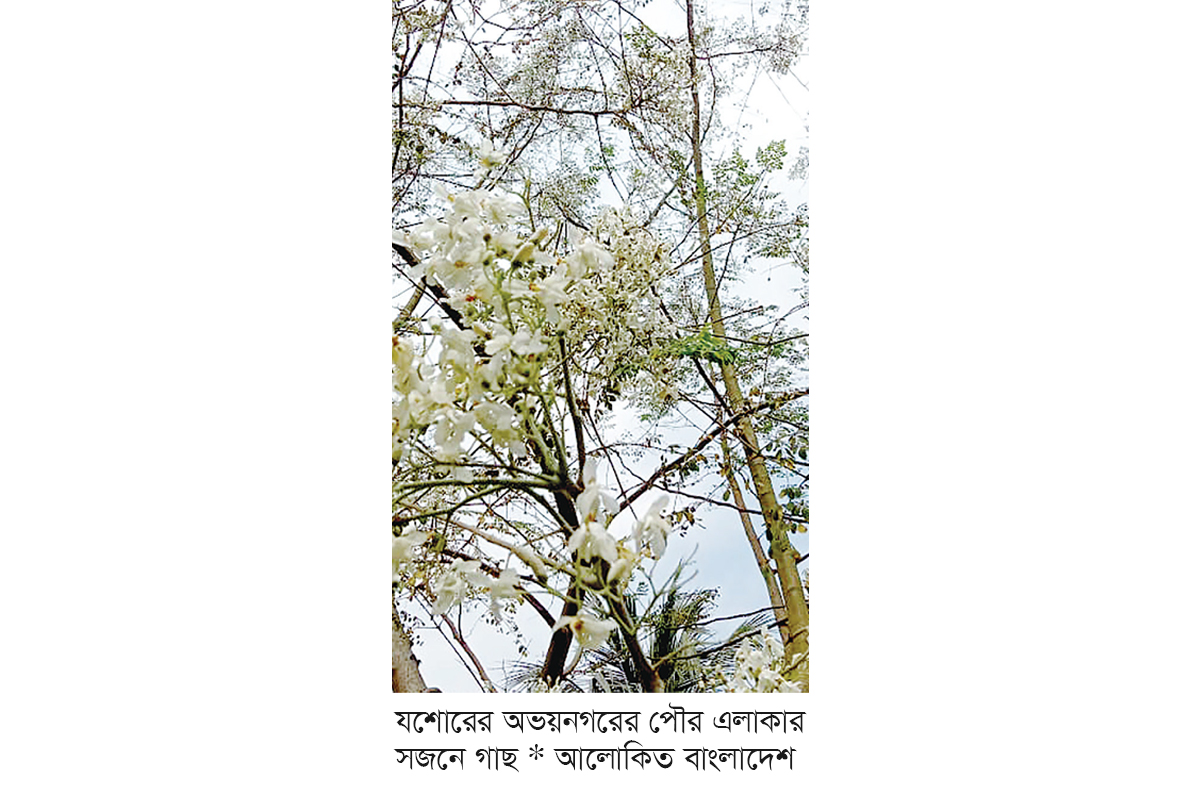শীতের শেষে বসন্তের আগমনে বাংলার প্রকৃতিতে গাছে গাছে শোভা ছড়াচ্ছে শ্বেতশুভ্র সজনে ফুল। ডালে ডালে থোকায় থোকায় ঝুলে থাকা এই ফুল গ্রামীণ প্রকৃতির সৌন্দর্য বৃদ্ধি করার পাশাপাশি এর পুষ্টিগুণও অপরিসীম। এই শ্বেতশুভ্র ফুলগুলো যশোর জেলার অভয়নগর উপজেলার গ্রামের পথে-প্রান্তরে এক মনোরম দৃশ্য তৈরি করে এবং প্রকৃতিতে ভিন্ন রঙ ছড়িয়ে দিচ্ছে। শুধু প্রকৃতিতে ভিন্ন রঙ ছড়িয়ে দিচ্ছে না, বরং উচ্চ পুষ্টিগুণসমৃদ্ধ এবং ভেষজ গুণসম্পন্ন একটি গুরুত্বপূর্ণ উদ্ভিদ, যা স্থানীয়ভাবে সুস্বাদু সবজি হিসেবেও ব্যাপক জনপ্রিয়।