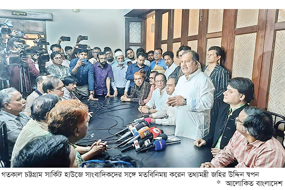 তথ্যমন্ত্রী জহির উদ্দিন স্বপন বলেছেন, চট্টগ্রাম প্রেসক্লাব পরিচালনা নিয়ে যে সমস্যা, সেই সমস্যা গঠনতান্ত্রিক বিধিবিধানের মাধ্যমে সমাধান করা হবে। চট্টগ্রাম প্রেসক্লাব একটি ঐতিহ্যবাহী সংগঠন, এই প্রতিষ্ঠান পরিচালনা নিয়ে ভুল বোঝাবুঝি থাকতে পারে, কিন্তু নিয়মের মধ্যে থেকে গঠনতান্ত্রিক উপায়ে সমস্যা সমাধানে আমি সহযোগিতা করব। গতকাল বুধবার চট্টগ্রাম সার্কিট হাউজে চট্টগ্রাম প্রেসক্লাবের নির্বাচিত ব্যবস্থাপনা কমিটি ও চট্টগ্রাম সাংবাদিক ইউনিয়নের (সিইউজে) নেতা ও সর্বস্তরের সাংবাদিকদের সঙ্গে মতবিনিময়কালে মন্ত্রী এসব কথা বলেন। মন্ত্রী আরও বলেন, চট্টগ্রাম প্রেস ক্লাব একটি প্রতিষ্ঠান।