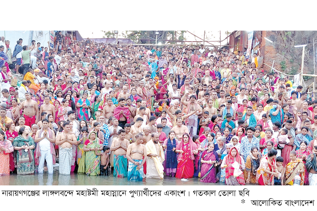 সনাতন ধর্মালম্বীদের পুণ্য স্নানোৎসব উপলক্ষে গতকাল বুধবার নারায়ণগঞ্জের লাঙ্গলবন্দে শুরু হয়েছে মহাষ্টমী মহাস্নান। প্রতি বছর চৈত্র মাসের শুক্লা তিথিতে দেশ-বিদেশের লাখো পুণ্যার্থী ব্রহ্মপুত্র নদের তীরে সমবেত হন। তাদের বিশ্বাস, শুক্লাঅষ্টমী তিথিতে এ নদীতে স্নানের মাধ্যমে পাপমোচন ঘটে এবং ব্রহ্মার সন্তুষ্টি লাভ করা যায়।