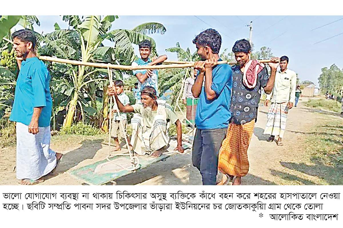 পাবনার দুর্গম চর অঞ্চলে যোগাযোগ ব্যবস্থা ভালো না থাকায় সরকারি স্বাস্থ্যসেবার মতো মৌলিক অধিকারসহ সকল সুবিধা থেকে বঞ্চিত প্রায় ৫ হাজার বাসিন্দা। এমন চিত্র দেখা গেছে পাবনা সদর উপজেলার ভাঁড়ারা ও চরতারাপুর ইউনিয়নের পদ্মার চরের গ্রামগুলোতে। শুষ্ক মৌসুমে বালু আর বর্ষায় পানি-কাদা মাড়িয়ে দূরের চিকিৎসা সেবা নিতে চাওয়া তাদের কাছে যেন এক মহাযুদ্ধ। অসুস্থতা বা রোগ বালাইয়ে অনিশ্চিত জীবন তাদের। দীর্ঘ কয়েক দশক পেরিয়ে গেলেও কেউই তাদের দিকে মুখ তুলে তাকায়নি। গড়ে ওঠেনি হাসপাতাল বা স্বাস্থ্যসেবা কেন্দ্র। উপেক্ষিতই রয়ে গেছে তাদের স্বাস্থ্যসেবা।
