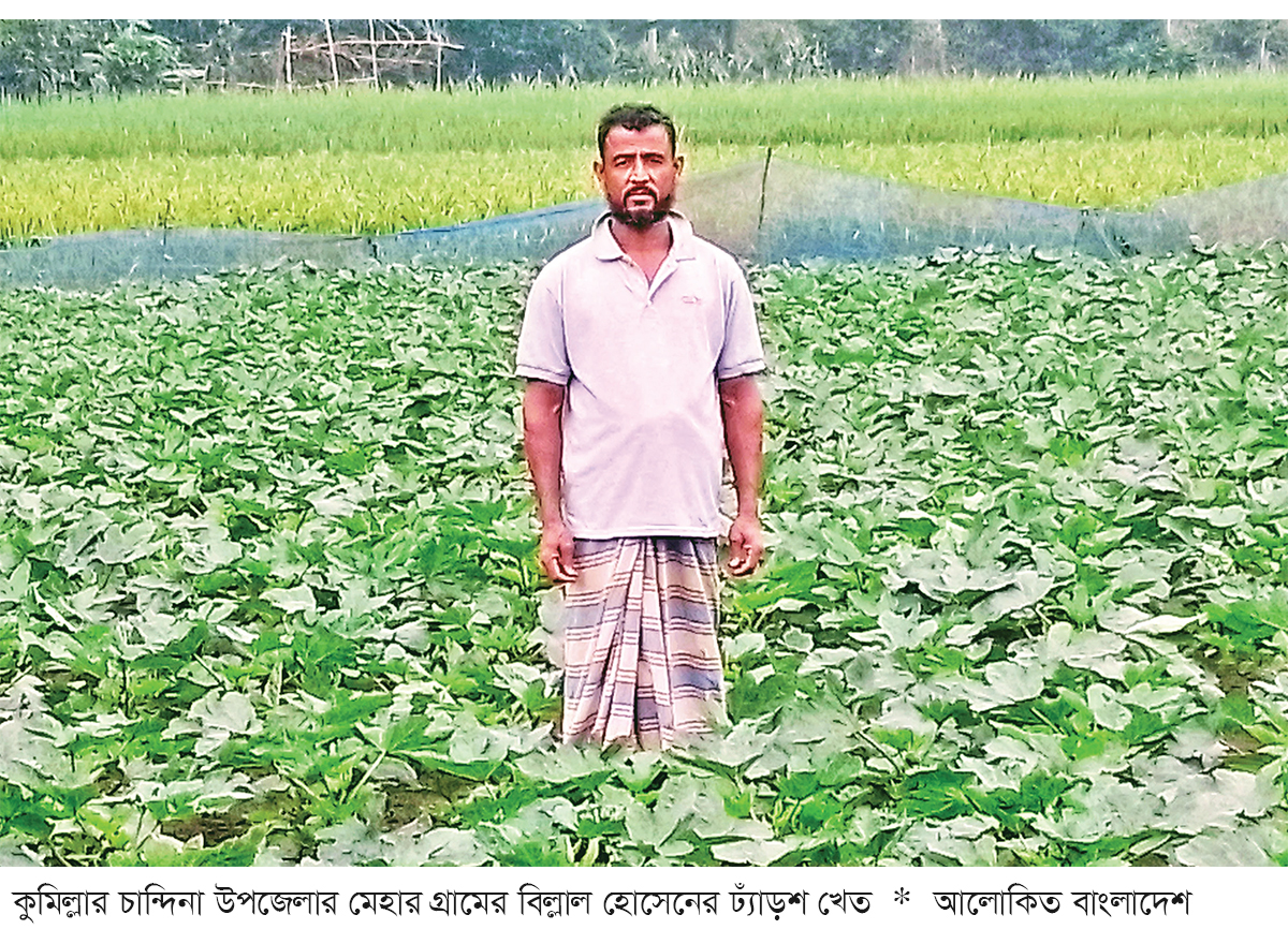 কুমিল্লার চান্দিনা উপজেলার মেহার গ্রাম। মাঠের পর মাঠ সবুজ ফসলের সমারোহ। তবে এই সবুজ গালিচার মধ্যে কৃষক বিল্লাল হোসেনের ছোট একটি জমি এখন গ্রামবাসীর আকর্ষণের কেন্দ্রবিন্দুতে পরিণত হয়েছে। মাত্র ১২ শতাংশ জমিতে তিনি বুনেছিলেন স্বপ্নের বীজ, আর এখন সেই স্বপ্নে দেখা দিচ্ছে রুপালি রেখা। শ্রম, নিষ্ঠা আর সঠিক পরিচর্যার সমন্বয়ে বিল্লাল হোসেন এবার ঢেঁড়সের বাম্পার ফলনের আশা করছেন, যা তাকে বড় ধরনের লাভের পথ দেখাচ্ছে।