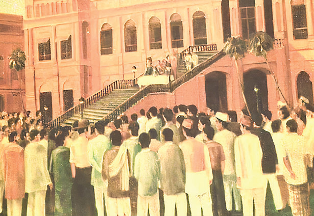 ডানদিকে আসন নিয়েছেন নবাব আহসানউল্লাহ। বাঁ-দিকে বসে আছেন পৌর কমিশনার। ৫টার দিকে শুরু হলো অধিবেশন। কমিশনার সাহেব ইলেকট্রনিক লাইট সম্পর্কিত প্রবন্ধ পাঠ করলেন। এরপর বক্তৃতা দিতে এলেন মিস্টার বোল্টন। নবাব আহসানউল্লাহর দানশীলতার প্রশংসা করলেন তিনি। বক্তৃতার এক অংশে বললেন পৌরসভার দায়িত্ব বেড়ে যাওয়ার কথা, তাগাদা দিলেন জলনিষ্কাশন ব্যবস্থা উন্নত করার।