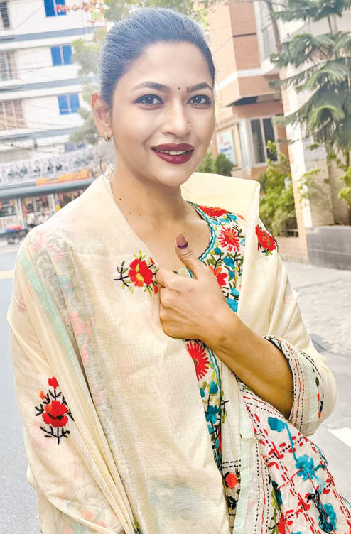 রটারড্যামজয়ী এ অভিনেত্রীর প্রত্যাশা, ‘আশা করি আমাদের সংস্কৃতির দিকে সরকারের নজর থাকবে। শিল্পীদের পেশাগত স্বীকৃতি রাষ্ট্রীয়ভাবে নেই। আশা করি সেদিকেও সরকারের ইতিবাচক দৃষ্টি থাকবে। আরও নানান রকমের কাজ আছে যা দেশ ও জাতির জন্য কল্যাণকর আশা করি সরকার সেগুলো করবে।’ বাঁধন ছাড়াও ভোট দিয়ে নিজেদের মতামত ব্যক্ত করেছেন ওমর সানী, রবি চৌধুরী, কুদ্দুস বয়াতি, নাজমুন মুনিরা ন্যান্সিসহ তারাকাদের অনেকে। গতকাল সকাল সাড়ে ৭টা থেকে সারাদেশে ভোটগ্রহণ শুরু হয়েছে। ভোটগ্রহণ চলছে বিকাল সাড়ে ৪টা পর্যন্ত।