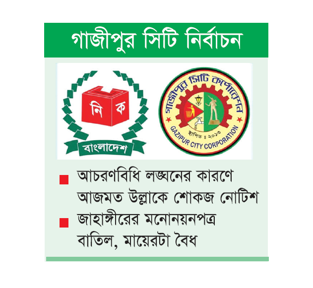 জমে উঠেছে গাজীপুর সিটি করপোরেশন নির্বাচন। এ সিটিতে ভোট সুষ্ঠু করতে হাডলাইনে যাচ্ছে নির্বাচন কমিশন (ইসি)। ভোটের আগে নৌকার মেয়র প্রার্থী আজমত উল্লা খানকে আচরণবিধি লঙ্ঘনের বিষয়ে কারণ দর্শানো নোটিশ দিচ্ছে নির্বাচন কমিশন। সেই সঙ্গে নির্বাচন কমিশনে স্বশরীরে এসে ব্যাখ্যা দিতে হবে তাকে। অন্যদিকে ঋণ খেলাপির কারণে মেয়র প্রার্থী জাহাঙ্গীরের মনোনয়নপত্র বাতিল করেছে সাংবিধানিক প্রতিষ্ঠানটি।