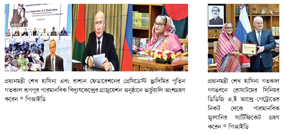 বিশ্বের অন্যান্য দেশের মতোই রূপপুর পারমাণবিক বিদ্যুতের যুগে প্রবেশ করেছে বাংলাদেশ। দেশের ইতিহাসে সবচেয়ে ব্যয়বহুল প্রকল্পের জ্বালানি আনুষ্ঠানিকভাবে হস্তান্তর করা হয়েছে। গতকাল বৃহস্পতিবার ‘ফ্রেশ নিউক্লিয়ার ফুয়েল’ বা ইউরেনিয়াম হস্তান্তর অনুষ্ঠানে ভার্চুয়ালি যুক্ত ছিলেন প্রধানমন্ত্রী শেখ হাসিনা ও রাশিয়ার প্রেসিডেন্ট ভ্লাদিমির পুতিন। বিজ্ঞান ও প্রযুক্তিমন্ত্রী স্থপতি ইয়াফেস ওসমানের সভাপতিত্বে অনুষ্ঠানে স্বাগত বক্তব্য দেন বিজ্ঞান ও প্রযুক্তি মন্ত্রণালয়ের সচিব মো. আলী হোসেন। এছাড়া শুভেচ্ছা বক্তব্য দেন আন্তর্জাতিক পরমাণু শক্তি সংস্থার (আইএইএ) ডিজি রাফায়েল মারিয়ানো গ্রসি, রাশিয়ার রাষ্ট্রীয় পারমাণবিক শক্তি করপোরেশন রোসাটমের মহাপরিচালক অ্যালেক্সিই লিখাচেভ। অনুষ্ঠানে আরো উপস্থিত ছিলেন পাবনা-৪ আসনের সংসদ সদস্য আলহাজ নুরুজ্জামান বিশ্বাস, সিরাজগঞ্জ-২ আসনের সংসদ সদস্য ডা. হাবিবে মিল্লাত, ঈশ্বরদী উপজেলা পরিষদের চেয়ারম্যান মো. নায়েব আলী বিশ্বাস ও পৌরসভার মেয়র ইছাহক আলী মালিথাসহ বিভিন্ন স্তরের মানুষ।
