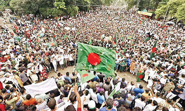 শৈরাচারী শেখ হাসিনার পতনের একমাস পূর্তি উপলক্ষে বৈষম্যবিরোধী ছাত্র আন্দোলনের উদ্যোগে জুলাই গণহত্যায় নিহতদের স্মরণে গতকাল রাজধানীতে পালিত হয় শহীদি মার্চ কর্মসূচি। এসময় শাহবাগে দেখা যায় ছাত্র-জনতার ঢল * আলোকিত বাংলাদেশ