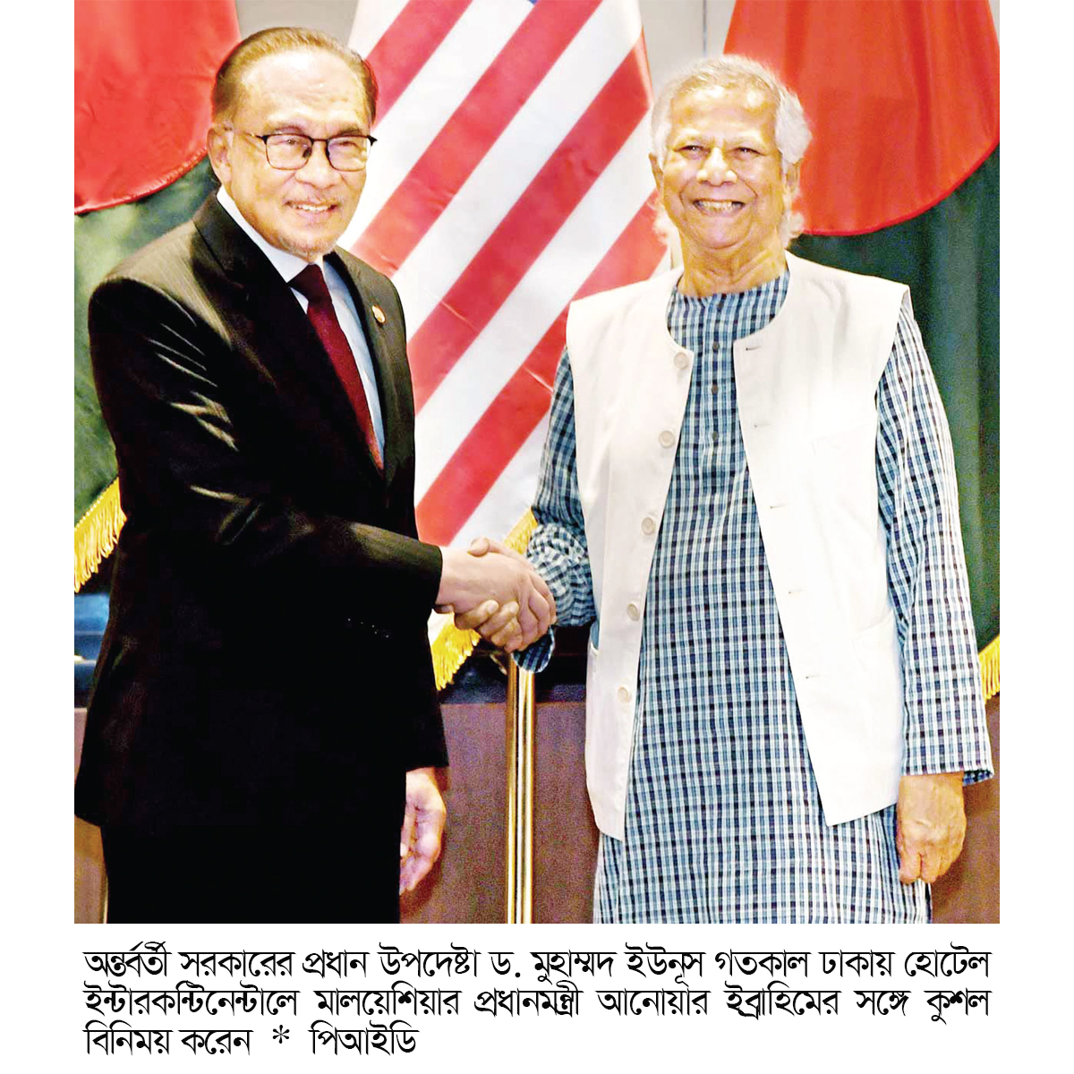ড. ইউনূস বলেন, আমরা আমাদের দ্বিপাক্ষিক সম্পর্ক এগিয়ে নিতে সম্মত হয়েছি। যেখানে তারুণ্যের শক্তিতে এগিয়ে যাওয়ার বিষয়ে একমত হয়েছি। সম্পর্ক নতুন উচ্চতায় নিতে অর্থনৈতিক, সাংস্কৃতিক, রোহিঙ্গা ইস্যুতে আলোচনা হয়েছে। প্রধান উপদেষ্টা বলেন, বাণিজ্য ও বিনিয়োগ, শিক্ষা, প্রযুক্তিসংক্রান্ত বিষয় এবং মানবসম্পদ উন্নয়ন, জনশক্তি রফতানি, যোগাযোগ, অবকাঠামো উন্নয়ন এবং প্রতিরক্ষা সহযোগিতাসহ পারস্পরিক স্বার্থ সংশ্লিষ্ট ক্ষেত্রগুলো নিয়ে কথা বলেছি। মালয়েশিয়ায় বাংলাদেশিদের জন্য কর্মসংস্থান তৈরি এবং ভিসা সহজীকরণের বিষয়েও আলোচনা হয়েছে। এর আগে দুপুরে হজরত শাহজালাল আন্তর্জাতিক বিমানবন্দরে মালয়েশিয়ার প্রধানমন্ত্রীকে স্বাগত জানান প্রধান উপদেষ্টা। সেখানেই তাদের মধ্যে সংক্ষিপ্ত বৈঠক অনুষ্ঠিত হয়। প্রেস উইং থেকে জানানো হয়, ঢাকায় তার পুরনো বন্ধুকে স্বাগত জানাতে পেরে প্রধান উপদেষ্টা ‘খুব খুশি’। বৈঠকে ছাত্র-নেতৃত্বাধীন বিপ্লব, ছাত্র ও জনগণের আত্মত্যাগ এবং বিগত সরকার কর্তৃক সংঘটিত গণহত্যা নিয়ে সংক্ষিপ্ত বক্তব্য দেন প্রধান উপদেষ্টা। ড. ইউনূস অন্তর্বর্তী সরকারের প্রধানের দায়িত্ব নেয়ার পর মালয়েশিয়ার প্রধানমন্ত্রী প্রথম শীর্ষ নেতা হিসেবে ঢাকা সফরে এসেছেন। জানা যায়, আনোয়ার ইব্রাহিমের পুরোনো বন্ধু ড. ইউনূস। বন্ধুর আমন্ত্রণে ঢাকায় এসেছেন তিনি। সবশেষ ২০১৩ সালের নভেম্বরে সরকারি সফরে ঢাকায় এসেছিলেন মালয়েশিয়ার তৎকালীন প্রধানমন্ত্রী নাজিব রাজাক।