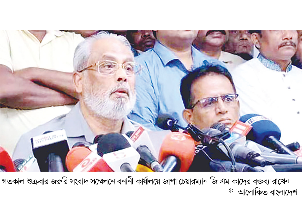 সংবাদ সম্মেলনে আরো উপস্থিত ছিলেন- জাপার মহাসচিব মুজিবুল হক চুন্নু, অতিরিক্ত মহাসচিব রেজাউল করিম, শামীম হায়দার পাটোয়ারী ও জিএম কাদেরের স্ত্রী শেরিফা কাদের।