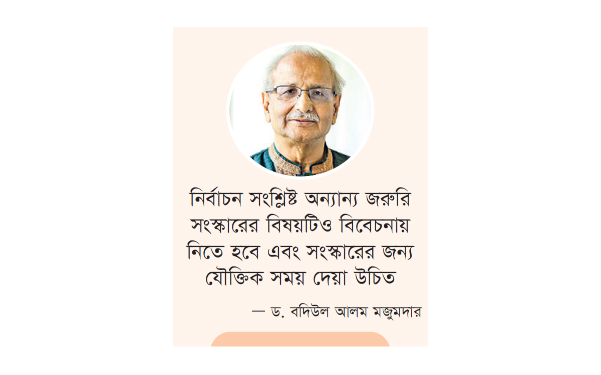 স্থানীয় সরকার নির্বাচন আগে না জাতীয় নির্বাচন আগে- এই ধরনের সিদ্ধান্ত গ্রহণ করার আগে প্রধান রাজনৈতিক দলগুলোর মতামত গ্রহণ করা জরুরি বলেও মনে করেন বদিউল আলম মজুমদার। তিনি বলেন, সরকারের পক্ষ থেকে ভোটার তালিকা হালনাগাদ করার কথা বলা হচ্ছে। এতে বেশ সময় লাগতে পারে। তবে এনআইডি হাল নাগাদ থাকলে পৃথক ভোটার তালিকার প্রয়োজন আছে কি না তা ভেবে দেখতে হবে। এসব নানামুখী জল্পনা-কল্পনার মধ্যে জাতীয় নির্বাচন কবে অনুষ্ঠিত হবে, তা কিন্তু এখনো স্পষ্ট নয়।