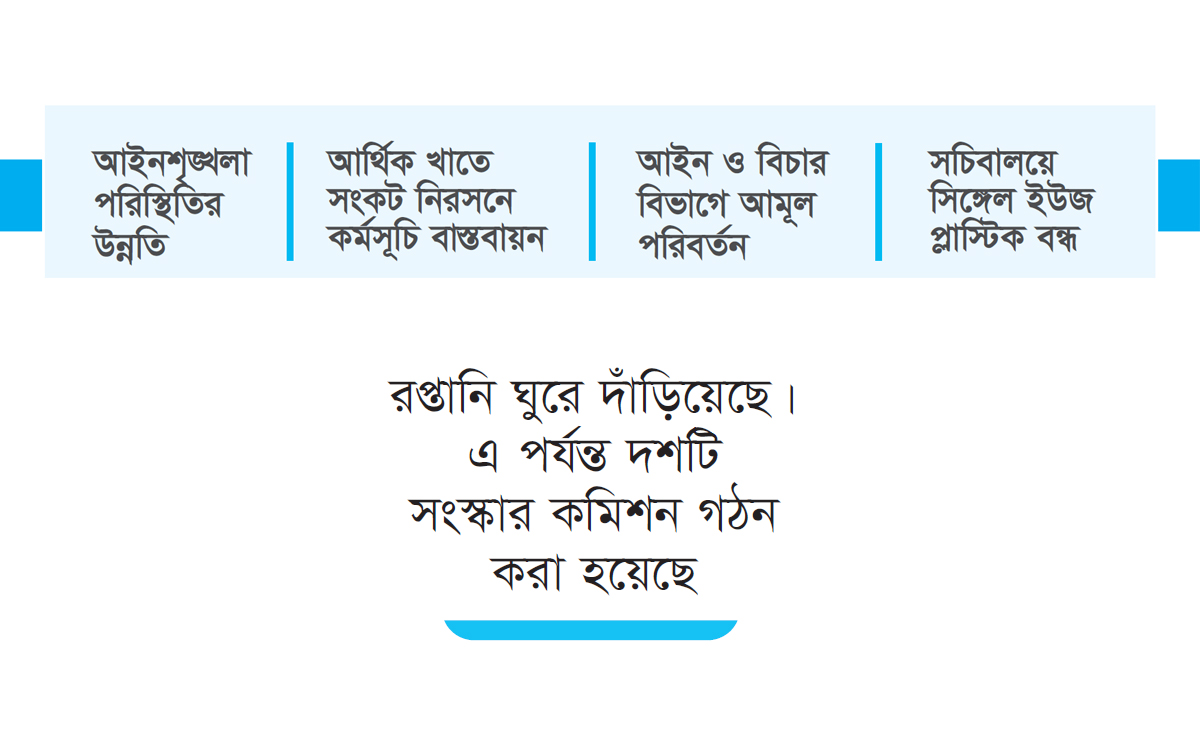 জানা গেছে, অন্তর্বর্তী সরকার, রাজনৈতিক দল ও ছাত্র সমাজকে সঙ্গে নিয়ে আগস্টের প্রথম কয়েক সপ্তাহের মধ্যেই দেশে শৃঙ্খলা ফিরিয়ে আনতে সক্ষম হয়। এসময় সরকার আইনশৃঙ্খলা পরিস্থিতি স্থিতিশীল রাখতে সফল হয়েছে। বৈদেশিক মুদ্রার রিজার্ভ পুনরুদ্ধার হয়েছে। রিজার্ভে হাত না দিয়েই বিলিয়ন বিলিয়ন ডলারের আন্তর্জাতিক পেমেন্ট বাধ্যবাধকতা পূরণ করা হয়েছে। রপ্তানি ঘুরে দাঁড়িয়েছে। এপর্যন্ত দশটি সংস্কার কমিশন গঠন করা হয়েছে। গুরুত্বপূর্ণ কমিশনগুলো তাদের প্রতিবেদন ৩১ ডিসেম্বরের মধ্যে জমা দেবে। রাজনৈতিক দলগুলোর সঙ্গে আলোচনা করে এই প্রতিবেদনগুলোর ভিত্তিতে ঐক্যমত তৈরি করা হবে। অধ্যাপক মুহাম্মদ ইউনূসের নেতৃত্বাধীন অন্তর্বর্তী সরকার এবং তার সংস্কার উদ্যোগের জন্য প্রায় সব দেশ থেকে নজিরবিহীন সমর্থন পেয়েছেন। নিউইয়র্ক ও বাকুতে অনুষ্ঠিত বছরের বৃহত্তম বৈশ্বিক সম্মেলনগুলোতে তাকে একজন রকস্টারের মতো সম্মানিত করা হয়েছে। বহুপক্ষীয় ও দ্বিপক্ষীয় উন্নয়ন সংস্থা আট বিলিয়ন ডলারের বেশি ঋণ দেয়ার প্রতিশ্রুতি দিয়েছে। অন্তর্বর্তী সরকারের সবচেয়ে বড় চ্যালেঞ্জ ছিল প্রত্যাশা পূরণ। বিভিন্ন গোষ্ঠী দাবি নিয়ে রাস্তায় নেমেছে এবং হঠাৎ করে ক্ষোভ প্রকাশ করেছে। সরকার এ পর্যন্ত আলোচনার মাধ্যমে বিক্ষোভ মোকাবিলা করেছে। বিক্ষোভ দমন করতে খুব কমই বলপ্রয়োগ করা হয়েছে। গার্মেন্টস খাতে অস্থিরতা দেখা দিয়েছে। রাজনৈতিকভাবে সংশ্লিষ্ট কিছু কারখানা মালিক গা-ঢাকা দিয়েছেন, ফলে সরকারকে প্রতিদিনই সংকট মোকাবিলা করতে হয়েছে। তবে সরকার সর্বোচ্চ সংযম দেখিয়ে অস্থিরতার অবসান ঘটিয়েছে। কয়েকটি বিধ্বংসী বন্যা এবং মূলত প্রাকৃতিক দুর্যোগের কারণে নিত্যপ্রয়োজনীয় পণ্যের মূল্যবৃদ্ধি দক্ষতার সঙ্গে সামাল দিয়েছে। প্রচেষ্টার অংশ হিসেবে, দুর্যোগ ব্যবস্থাপনা ও ত্রাণ মন্ত্রণালয় যেকোনো প্রাকৃতিক বা মনুষ্যসৃষ্ট দুর্যোগ মোকাবিলায় তার সামগ্রিক সক্ষমতা জোরদার করার পদক্ষেপ নিয়েছে। মন্ত্রণালয় ইতোমধ্যে আগস্ট ও সেপ্টেম্বর মাসে ১৭টি জেলায় বেশ কয়েকটি ভয়াবহ বন্যা মোকাবিলা করেছে। দুর্যোগ ব্যবস্থাপনা ও ত্রাণ উপদেষ্টা ফারুক-ই-আজম বীরপ্রতীক বলেন, ‘সরকার বন্যার সময় প্রয়োজনীয় ত্রাণসামগ্রী, ওষুধ ও স্বাস্থ্যসেবা নিশ্চিত করে বন্যা দুর্গতদের পাশে দাঁড়ানোর সর্বোচ্চ প্রচেষ্টা চালিয়েছে। এখন মন্ত্রণালয় বন্যা দুর্গতদের পুনর্বাসন কার্যক্রম পরিচালনা করছে।’