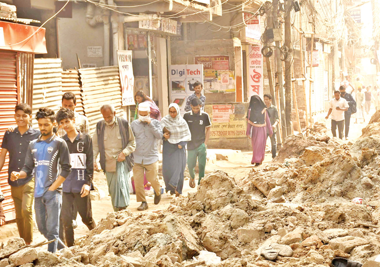 রাজধানীতে সেবাদাতা সংস্থাগুলোর কার্যক্রমে সমন্বয়হীনতার কারণে অলিগলিতে খোঁড়াখুঁড়ি চলতেই থাকে। কখনও পয়ঃনিষ্কাশনের পাইপ বসানোর জন্য, কখনো বিদ্যুতের লাইন আবার কখনো পানির লাইন বসানোর জন্য কাটা হচ্ছে সড়ক। আর এসব খোঁড়াখুঁড়িতে চরম ভোগান্তিতে পড়তে হয় নগরবাসীকে। দক্ষিণ মুগদা থেকে গতকাল ছবিটি তোলা