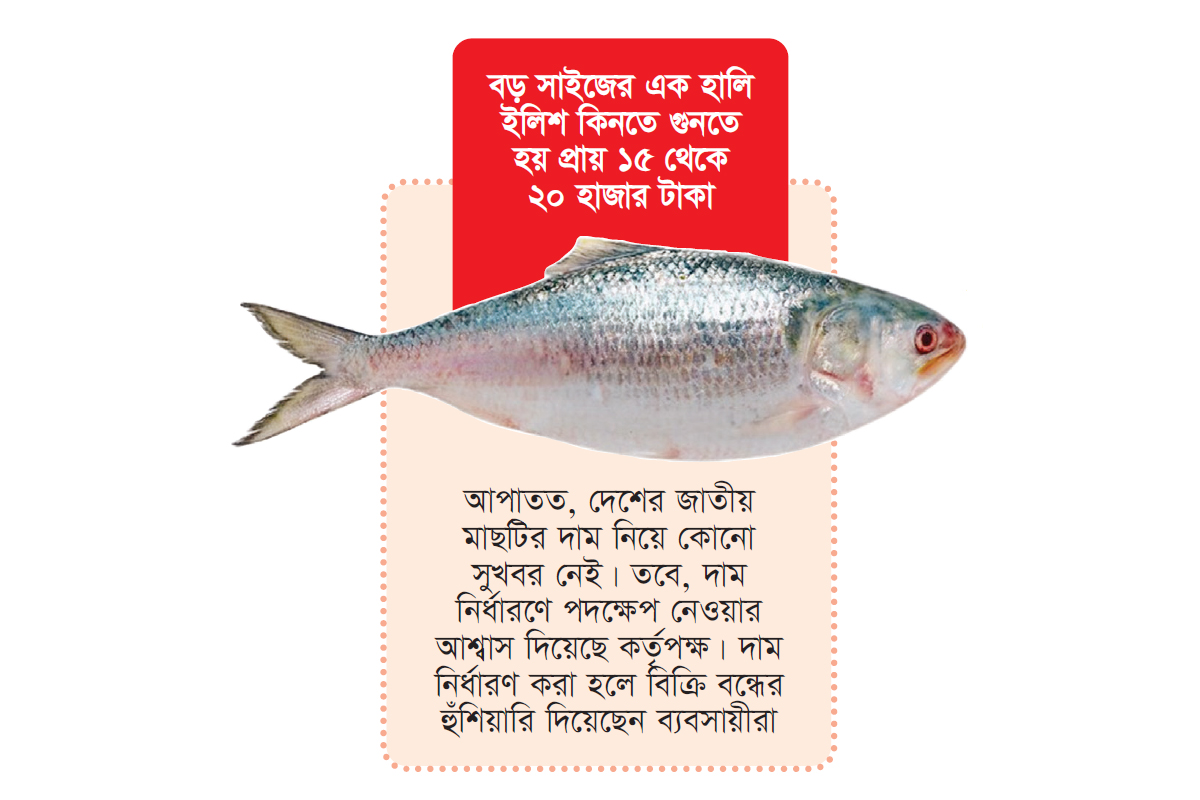রাজধানীর বিভিন্ন বাজার ঘুরে দেখা যায়, এক কেজি সাইজের প্রতিটি ইলিশের দাম চাওয়া হয় ২ হাজার ৮০০ টাকা। আর ৬০০ গ্রাম সাইজের ইলিশের কেজি ২ হাজার টাকা হাঁকছেন বিক্রেতা। একজন বিক্রেতা বলেন, ‘সকালে আড়তে মাছ পাইনি। ঘাট থেকে এসব মাছ কিনে আনা হয়েছে একটু আগেই।’ হাত দিয়ে দেখিয়ে এই বিক্রেতা বলেন, ‘ওইদিকে একটা দোকানেও ইলিশ নেই। সকালে সবাই আড়ত থেকে ফিরে এসেছে, অনেকে অন্য মাছ বিক্রি করছে।’ আরেক বিক্রেতা বলেন, ‘ঈদের পর থেকে এখন পর্যন্ত প্রতি কেজি ইলিশের দাম ৬০০ থেকে ৮০০ টাকা বেশি।’ এই বিক্রেতা এক কেজি ৩০০ গ্রাম ওজনের ইলিশ প্রতি কেজি ৩ হাজার ২০০ টাকা দাম চান। অর্থাৎ তার প্রতিটি ইলিশের দাম দাঁড়াচ্ছে চার হাজার টাকার কাছাকাছি। একজন ক্রেতা সেখানে ইলিশ ওজন করিয়ে না কিনে ফিরে যাচ্ছিলেন। তিনি বলেন, ‘এটা (ইলিশ) আমাদের কেনার ক্ষমতার বাইরে। মাঝেমধ্যে পরিবারের আবদারে কিনতে হয়, আর এখন কিছু আত্মীয় ছিল, সেজন্য কিনতে চাইলাম। কিন্তু দাম এত বেশি হলে কেনা সম্ভব কীভাবে?’