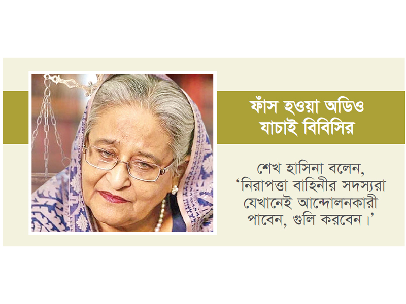 বিবিসি’র যাচাই করা ওই রেকর্ডিং অনুসারে, শেখ হাসিনা তার নিরাপত্তা বাহিনীগুলোকে বিক্ষোভকারীদের বিরুদ্ধে ‘প্রাণঘাতী অস্ত্র ব্যবহার’ করার অনুমতি দিয়েছেন এবং ‘তারা (এসব বাহিনীর সদস্যরা) যেখানেই তাদের (আন্দোলনকারী) পাবে, তারা গুলি করবে।’ অজ্ঞাত একজন ঊর্ধ্বতন সরকারি কর্মকর্তার সঙ্গে শেখ হাসিনার কথোপকথনের ফাঁস হওয়া অডিওটি এখন পর্যন্ত সবচেয়ে গুরুত্বপূর্ণ প্রমাণ যে তিনি সরকারবিরোধী বিক্ষোভকারীদের গুলি করার জন্য সরাসরি অনুমতি দিয়েছিলেন। ফাঁস হওয়া অডিওটি সম্পর্কে জানেন এমন একটি সূত্র বিবিসিকে জানিয়েছে, গত ১৮ জুলাই নিজের সরকারি বাসভবন গণভবন থেকে শেখ হাসিনা ওই ফোনালাপটি করেন। চলতি বছরের মার্চের শুরুতে ফোনালাপের অডিওটি কে ফাঁস করেছে তা স্পষ্ট নয়। বিক্ষোভের পর থেকে হাসিনার কলের অসংখ্য ক্লিপ অনলাইনে প্রকাশিত হয়েছে যার অনেকগুলোই যাচাই করা হয়নি। ১৮ জুলাইয়ের ফাঁস হওয়া রেকর্ডিংয়ের কণ্ঠের সঙ্গে শেখ হাসিনার কণ্ঠস্বরের মিল শনাক্ত করেছে বাংলাদেশ পুলিশের অপরাধ তদন্ত বিভাগ। বিবিসি আলাদাভাবে ইয়ারশটের অডিও ফরেনসিক এক্সপার্টদের দিয়ে এই রেকর্ডিংয়ের সত্যতা যাচাই করেছে এবং তারা এটিতে এডিট করার বা কোনো রকম পরিবর্তন করার কোনো প্রমাণ পায়নি। অডিওটি কৃত্রিমভাবে তৈরি করা হয়েছে এমন সম্ভাবনাও খুবই কম বলে তারা জানিয়েছে। মানবাধিকার বা পরিবেশ রক্ষার ইস্যুতে অডিও সংক্রান্ত তদন্তের কাজ করে অলাভজনক প্রতিষ্ঠান ইয়ারশট। তারা বলছে, ফাঁস হওয়া রেকর্ডিংটি সম্ভবত এমন একটি ঘরে ধারণ করা হয়েছিল যেখানে ফোন কলটি স্পিকারে বাজানো হয়েছিল। কারণ এতে স্বতন্ত্র টেলিফোনিক ফ্রিকোয়েন্সি এবং ব্যাকগ্রাউন্ডে কিছু শব্দ ছিল। ইয়ারশটের বিশেষজ্ঞরা রেকর্ডিংজুড়ে ইলেকট্রিক নেটওয়ার্ক ফ্রিকোয়েন্সি বা ইএনএফ শনাক্ত করেছে, যে ফ্রিকোয়েন্সি অন্য একটি ডিভাইস থেকে অডিও রেকর্ডিংয়ের ক্ষেত্রে প্রায়ই উপস্থিত থাকে। এটি এমন এক সূচক যার মানে হলো অডিওটিতে হেরফের করা হয়নি। তারা শেখ হাসিনার বক্তব্যে ছন্দ, স্বর এবং শ্বাসের শব্দ বিশ্লেষণ করেছে এবং ধারাবাহিক নয়েজের স্তরও শনাক্ত করেছে। অডিওতে কৃত্রিম কোনো পরিবর্তন আনার প্রমাণও খুঁজে পায়নি। ব্রিটিশ আন্তর্জাতিক মানবাধিকার আইনজীবী টবি ক্যাডম্যান বিবিসিকে বলেছেন, ‘রেকর্ডিংগুলো তার (শেখ হাসিনার) ভূমিকা প্রমাণের জন্য অত্যন্ত গুরুত্বপূর্ণ, এগুলো স্পষ্ট এবং সঠিকভাবে প্রমাণিত হয়েছে এবং অন্যান্য প্রমাণ দ্বারা সমর্থিত।’