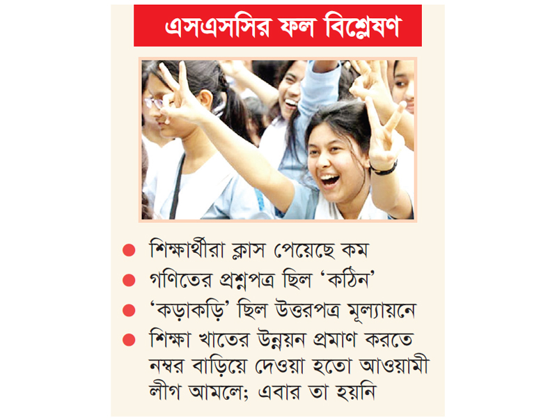 ১৬ বছর আগের ধারায় এসএসসির ফল : ২০০৯ সালে দেশে জাতীয় নির্বাচন দেয় ফখরুদ্দীন-মইনুদ্দিনের সরকার। বহুল আলোচিত ওয়ান/ইলেভেনের সরকারের অধীনে সেটি ছিল সর্বশেষ এসএসসি পরীক্ষা। ২০০৯ সালে এসএসসি ও সমমান পরীক্ষায় ১১টি বোর্ডে গড় পাসের হার ছিল ৬৭ দশমিক ৪১ শতাংশ। সে বছর মোট পরীক্ষার্থী ছিল ১০ লাখ ২৩ হাজার ৪৮৪ জন। পাস করে ৬ লাখ ৮৯ হাজার ৩৯০ জন। ফেল করেছিল ৩ লাখ ৩৪ হাজার ৯৪ জন। জিপিএ-৫ পেয়েছিল ৮২ হাজার ২১২ জন।