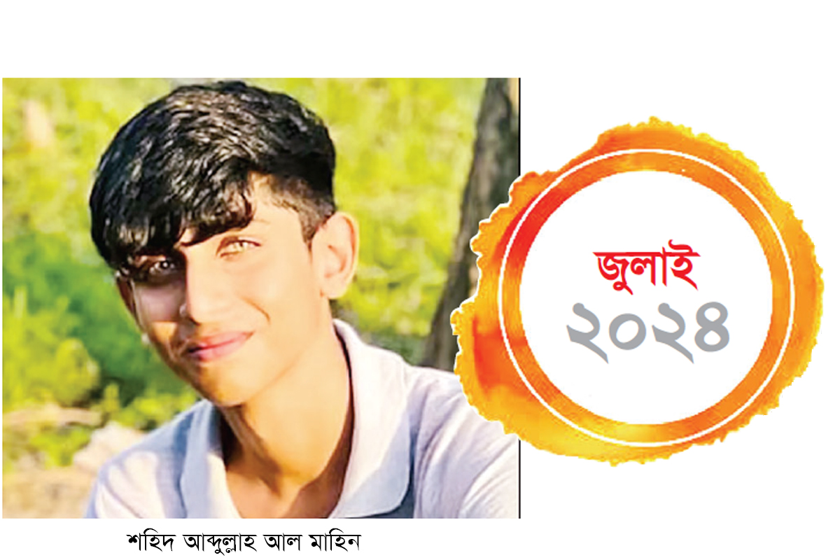 ছাত্র-জনতার আন্দোলন চলাকালে ৪ আগস্ট রাজধানীর উত্তরার আজমপুরে রাজউক কমার্শিয়াল কমপ্লেক্সের সামনে গুলিতে নিহত হয় আব্দুল্লাহ আল মাহিন (১৬) নামের এই কিশোর। তার পরিবার জানিয়েছে, একজন হেলমেটধারীর অস্ত্রের গুলিতে সে নিহত হয়।