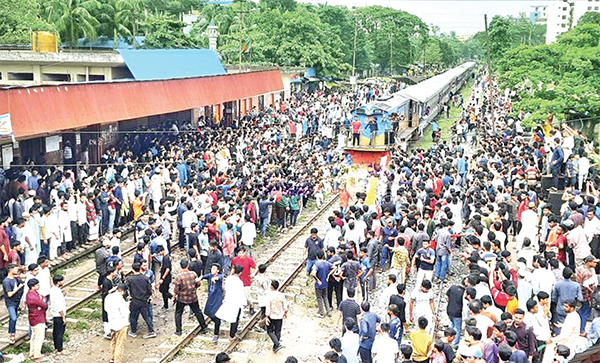কোটাসংস্কারের দাবিতে ২০২৪ সালের ১২ জুলাই চট্টগ্রাম বিশ্ববিদ্যালয় শিক্ষার্থীদের রেললাইন অবরোধ * সংগৃহীত