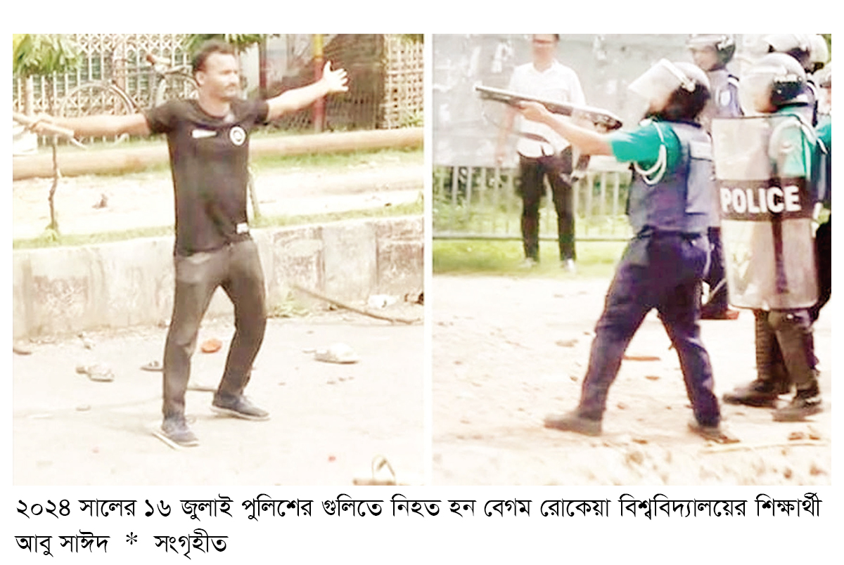 রংপুরে পুলিশের গুলিবর্ষণে নিহত ১, আহত অর্ধশতাধিক : কোটাবিরোধী আন্দোলনকারী শিক্ষার্থীদের সঙ্গে পুলিশ ও ছাত্রলীগের ত্রিমুখী সংঘর্ষে পুলিশের গুলিতে আবু সাঈদ নামে বেগম রোকেয়া বিশ্ববিদ্যালয়ের এক শিক্ষার্থী নিহত হয়। আহত হয়, সাংবাদিক ও শিক্ষার্থীসহ অর্ধশতাধিক। নিহত শিক্ষার্থীর লাশ হাসপাতাল থেকে বিশ্ববিদ্যালয় ক্যাম্পাসে নিয়ে আসার পথে পুলিশ ছিনিয়ে নেয়। পরিস্থিতি নিয়ন্ত্রণে আনতে রংপুরে পুলিশের পাশাপাশি বিজিবি চার প্লাটুন মোতায়েন করা হয়। নিহত সহপাঠীর লাশ রংপুর মেডিকেল কলেজ হাসপাতাল থেকে স্ট্রেচারে করে মিছিল নিয়ে আসার পথে পুলিশ লাইনস এর সামনে তাদের গতিরোধ করে। এ সময় পুলিশের সঙ্গে শিক্ষার্থীদের হাতাহাতির ঘটনা ঘটে। একপর্যায়ে পুলিশের গাড়ির সামনে শুইয়ে পড়ে প্রতিরোধ গড়ে তুললে পুলিশ লাশ ছিনিয়ে নিয়ে গাড়িতে করে রংপুর মেডিকেল কলেজ হাসপাতালের হিমঘরে নিয়ে যায় এবং সেখানে রাখে। নিহত শিক্ষার্থী আবু সাঈদ বেরোবির ইংরেজি বিভাগের ১২তম ব্যাচের শিক্ষার্থী। তার বাবার নাম মকবুল হোসেন। তার গ্রামের বাড়ি রংপুরের পীরগঞ্জ উপজেলার জাফরপাড়া বাবনপুরে বলে জানা গেছে। তিনি এই আন্দোলনে বেরোবি শাখার সমন্বয়ক ছিলেন।