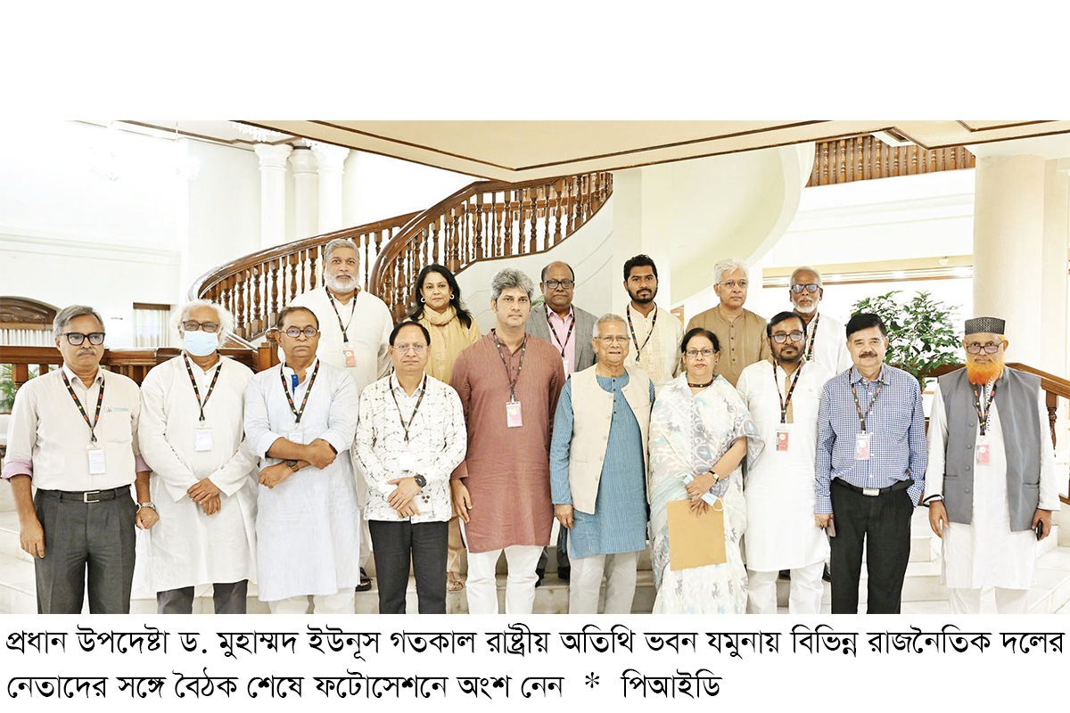 প্রধান উপদেষ্টা প্রফেসর মুহাম্মদ ইউনূস বলেছেন, জুলাই অভ্যুত্থানের এক বছরে আমাদের আয়োজন ছিল সব রাজনৈতিক দলকে একসঙ্গে নিয়ে অতীতকে স্মরণ করা, সেজন্য কর্মসূচি গ্রহণ করেছিলাম। এতে করে ফ্যাসিবাদের বিরুদ্ধে নিজেদের মধ্যে ঐক্যটা দৃশ্যমান হতো। কিন্তু এক বছর যেতে না যেতেই পরাজিত শক্তির নানা ষড়যন্ত্রের লক্ষণ দেখা যাচ্ছে। গতকাল বুধবার বিকালে রাষ্ট্রীয় অতিথি ভবন যমুনায় ১৩টি রাজনৈতিক দল ও জোটের নেতাদের সঙ্গে বৈঠকে এসব কথা বলেন তিনি।