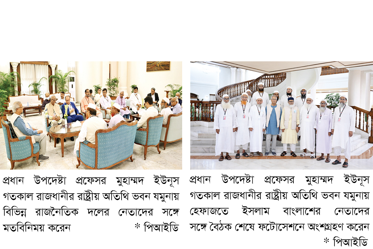 পতিত শক্তি গন্ডগোল লাগিয়ে নির্বাচনের আয়োজনকে ভন্ডুল করার অপচেষ্টা করছে বলে মন্তব্য করেছেন প্রধান উপদেষ্টা অধ্যাপক মুহাম্মদ ইউনূস। তিনি এই অপচেষ্টাকে প্রতিহত করতে ফ্যাসিবাদবিরোধী সব শক্তিকে ঐক্যবদ্ধ থাকার আহ্বান জানিয়েছেন। রাষ্ট্রীয় অতিথি ভবন যমুনায় গতকাল শনিবার বিকালে ১৪টি দল ও জোটের নেতাদের সঙ্গে বৈঠকে এই আহ্বান জানান প্রধান উপদেষ্টা অধ্যাপক ইউনূস। প্রধান উপদেষ্টার প্রেস উইং এ কথা জানিয়েছে।