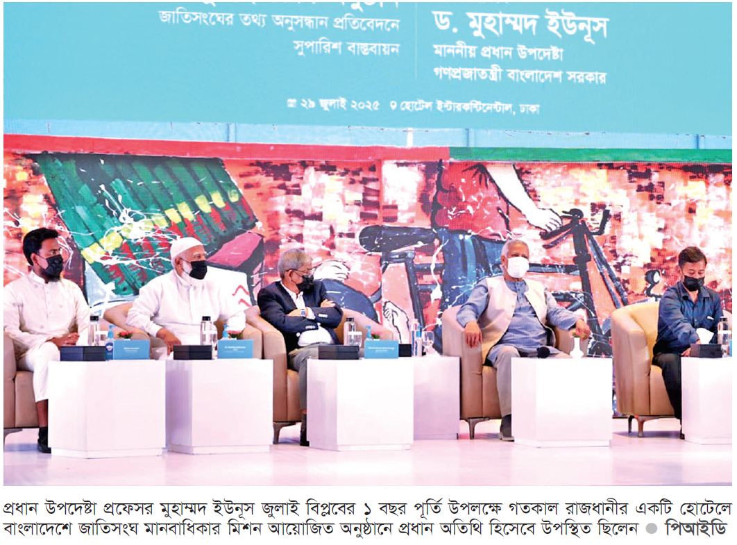 মানবাধিকার নিয়ে প্রধান উপদেষ্টা বলেন, গত বছরের আগস্টে অন্তর্বর্তীকালীন সরকার গঠনের পরপরই আমি মানবাধিকার বিষয়ক হাইকমিশনারের কার্যালয়কে (ওএইচসিএইচআর) ১ জুলাই থেকে ১৫ আগস্টের মধ্যে মানবাধিকার লঙ্ঘনের অভিযোগ তদন্তে একটি স্বাধীন ফ্যাক্ট ফাইন্ডিং মিশন পরিচালনার জন্য আনুষ্ঠানিকভাবে অনুরোধ করেছিলাম। আমরা বিশ্বাস করতাম যে সত্যের একটি নিরপেক্ষ এবং বিশ্বাসযোগ্য হিসাব কেবল ন্যায়বিচারের জন্য নয়, প্রতিকারের জন্যও অপরিহার্য।
