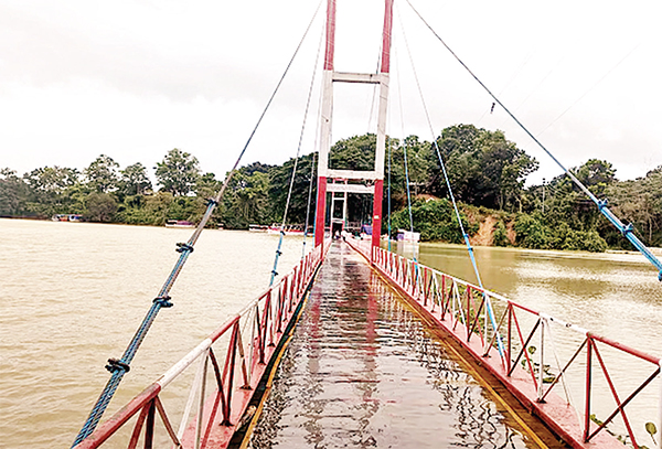 টানা বৃষ্টি ও উজান থেকে নেমে আসা পাহাড়ি ঢলে কাপ্তাই হ্রদে পানি বেড়ে যাওয়ায় ডুবে গেছে রাঙামাটির ঝুলন্ত সেতু। দুর্ঘটনা এড়াতে পর্যটকদের সেতুটিতে উঠতে নিষেধাজ্ঞা জারি করেছে রাঙামাটি পর্যটক কমপ্লেক্স। বৃষ্টি ও পাহাড়ি ঢলের কারণে গত সোমবার সেতুর কিছু অংশে পাটাতনের ওপর পানি ওঠে। তবে গতকাল বুধবার সকাল ছয়টার দিকে পানি বেড়ে সেতুটি তলিয়ে যায়। এ পরিস্থিতিতে সকাল ১০টার দিকে সেতুতে উঠতে পর্যটকদের জন্য নিষেধাজ্ঞা জারি করা হয় - আলোকিত বাংলাদেশ