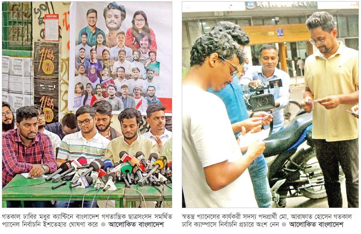 তিনি বলেন, ‘ঢাকা বিশ্ববিদ্যালয়ের একাডেমিক মানোন্নয়নপূর্বক একে একটি গবেষণাভিত্তিক বিশ্ববিদ্যালয়ে পরিণতকরণ এবং এর রাজনৈতিক স্বাধীনতা হবে আমাদের এক নম্বর অগ্রাধিকার। পাশাপাশি বিশ্ববিদ্যালয়ে শিক্ষার্থীদের একমাত্র পরিচয় হবে স্টুডেন্ট। ধর্ম-বর্ণ জাতির সাপেক্ষে কাউকে বৈষম্য করা বা মর্যাদা ক্ষুণ্ণ করার কোনো সুযোগ থাকবে না। ছাত্র সংসদ নির্বাচনের অভাবে রাজনীতি হয়ে দাঁড়িয়েছে পরিবারতান্ত্রিক ও ক্যাডারভিত্তিক। তাই প্রতিবছর ডাকসু নির্বাচন আয়োজন আমাদের অন্যতম এজেন্ডা।’