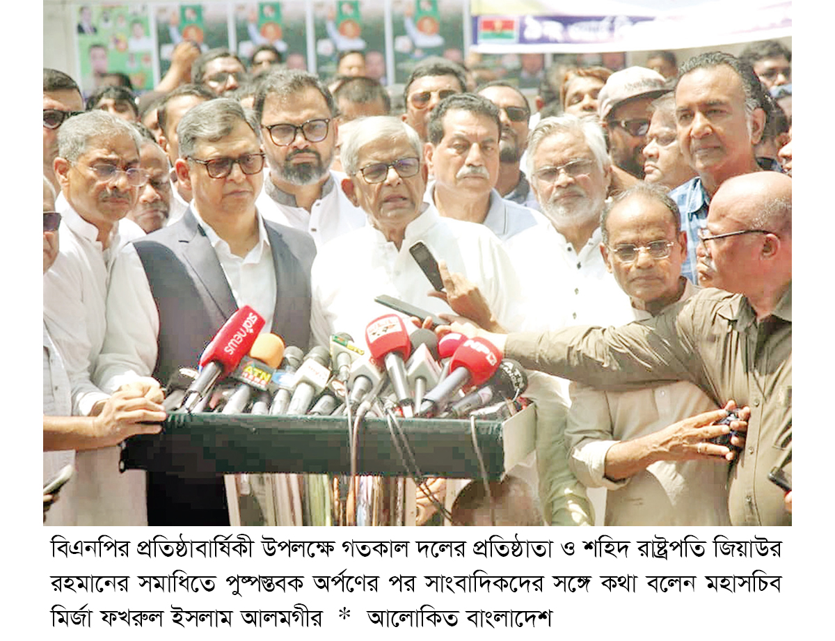 বিএনপির ৪৭তম প্রতিষ্ঠাবার্ষিকী উপলক্ষে মির্জা ফখরুল ইসলাম আলমগীর দলীয় নেতাকর্মীদের নিয়ে শেরেবাংলা নগরে জিয়াউর রহমানের সমাধিস্থলে যান। সেখানে জিয়ার কবরে পুষ্পস্তবক অর্পণ করেন এবং প্রয়াত নেতার আত্মার মাগফিরাত কামনা করে বিশেষ মোনাজাতে অংশ নেন। মোনাজাত শেষে মির্জা ফখরুল বলেন, এখন যে চ্যালেঞ্জ আমাদের সামনে রয়েছে সেটা হলো আগামী ফেব্রুয়ারিতে যে নির্বাচনের কথা আছে তা সুষ্ঠুভাবে করতে সর্বতোভাবে সহযোগিতা করা, সাহায্য করা।