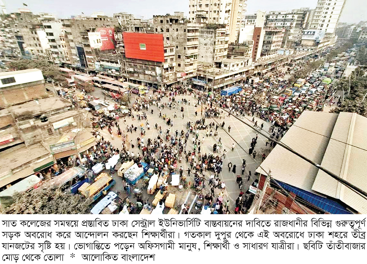 সাত কলেজের সমন্বয়ে প্রস্তাবিত ঢাকা সেন্ট্রাল ইউনিভার্সিটি বাস্তবায়নের দাবিতে রাজধানীর একাধিক স্থানে সড়ক অবরোধ করে আন্দোলন করেছেন শিক্ষার্থীরা। এতে ভোগান্তিতে পড়েন সাধারণ মানুষ।