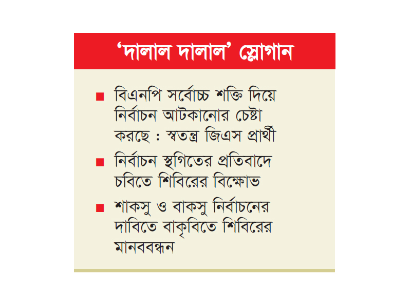 বিএনপি সর্বোচ্চ শক্তি দিয়ে নির্বাচন আটকানোর চেষ্টা করছে- স্বতন্ত্র জিএস প্রার্থী : শাকসু ও হল সংসদ নির্বাচন স্থগিতের পেছনে বিশ্ববিদ্যালয় প্রশাসন নয়, বিএনপি ও ছাত্রদল দায়ী বলে মন্তব্য করেছেন স্বতন্ত্র জিএস প্রার্থী পলাশ বখতিয়ার। গতকাল মঙ্গলবার দুপুরে প্রশাসনিক ভবনের সামনে আয়োজিত সংবাদ সম্মেলনে এ মন্তব্য করেন তিনি।