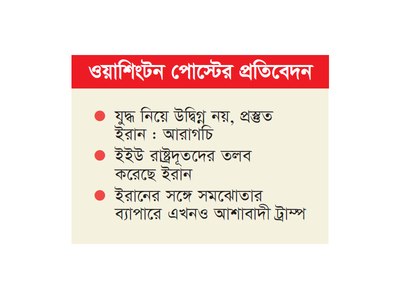 যুদ্ধ নিয়ে উদ্বিগ্ন নয়, প্রস্তুত ইরান : ইরানের পররাষ্ট্রমন্ত্রী আব্বাস আরাগচি জানিয়েছেন, যুদ্ধ নিয়ে তেহরান কোনোভাবেই উদ্বিগ্ন নয়, কারণ তারা সম্পূর্ণভাবে প্রস্তুত। তিনি সতর্ক করে বলেন, যদি সংঘাত শুরু হয়, তবে তা ইরানের গণ্ডি ছাড়িয়ে পুরো অঞ্চলে ছড়িয়ে পড়তে পারে। গতকাল রোববার তেহরানে সিএনএনকে দেওয়া এক সাক্ষাৎকারে এসব কথা বলেন আরাগচি।