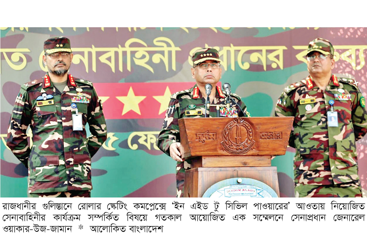 নির্বাচনি কেন্দ্রগুলোর পরিস্থিতি নিয়ন্ত্রণে প্রয়োজনে সেনাবাহিনী অতিরিক্ত বলপ্রয়োগ করতে পারে, তবে তা হবে সম্পূর্ণভাবে নির্ধারিত ‘রুলস অব এনগেজমেন্ট’ অনুসরণ করে বলে জানিয়েছেন সেনাসদরের সামরিক অপারেশন্স পরিদপ্তরের পরিচালক ব্রিগেডিয়ার জেনারেল দেওয়ান মোহাম্মদ মনজুর হোসেন। গতকাল বৃহস্পতিবার দুপুরে রাজধানীর গুলিস্তানে রোলার স্কেটিং কমপ্লেক্সে ‘ইন এইড টু সিভিল পাওয়ারের’ আওতায় নিয়োজিত সেনাবাহিনীর কার্যক্রম সম্পর্কিত বিষয়ে আয়োজিত এক সংবাদ সম্মেলনে এক প্রশ্নের জবাবে তিনি এ কথা জানান।