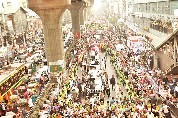ঢাকা-১৫ আসনের আগারগাঁও ও তালতলা এলাকায় গতকাল দলের আমির ডা. শফিকুর রহমানের নেতৃত্বে গণমিছিল করে বাংলাদেশ জামায়াতে ইসলামী * আলোকিত বাংলাদেশ