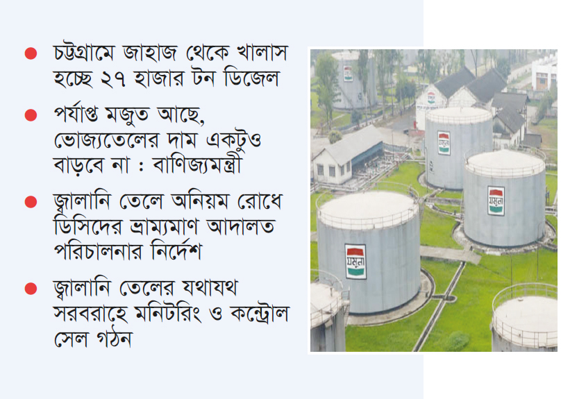 জ্বালানি তেলে অনিয়ম রোধে ডিসিদের ভ্রাম্যমাণ আদালত পরিচালনার নির্দেশ : জ্বালানি তেলের অবৈধ মজুত ও অতিরিক্ত দামে বিক্রি রোধে জেলা প্রশাসকদের (ডিসি) ভ্রাম্যমাণ আদালত পরিচালনার নির্দেশ দিয়েছে মন্ত্রিপরিষদ বিভাগ। গতকাল সোমবার এ নির্দেশনা দিয়ে মন্ত্রিপরিষদ বিভাগ থেকে দেশের সব জেলা প্রশাসকের কাছে চিঠি পাঠানো হয়। এর আগে এ বিষয়ে প্রয়োজনীয় নির্দেশনা দেওয়ার জন্য মন্ত্রিপরিষদ বিভাগকে চিঠি দেয় জ্বালানি ও খনিজসম্পদ বিভাগ। ডিসিদের কাছে পাঠানো মন্ত্রিপরিষদ বিভাগের চিঠিতে বলা হয়, জ্বালানি তেলের বাজারে শৃঙ্খলা বজায় রাখা ও কৃত্রিম সংকট প্রতিরোধের লক্ষ্যে জ্বালানি তেলের অবৈধ মজুত, নির্ধারিত মূল্যের চেয়ে অতিরিক্ত মূল্যে বিক্রি, খোলাবাজারে বিক্রি বন্ধ ও পাচাররোধে মোবাইল কোর্ট পরিচালনার জন্য জ্বালানি ও খনিজসম্পদ বিভাগ থেকে অনুরোধ জানানো হলো। এ বিষয়ে প্রয়োজনীয় কার্যক্রম গ্রহণের জন্য ডিসিদের নির্দেশনা দিয়েছেন মন্ত্রিপরিষদ বিভাগ।