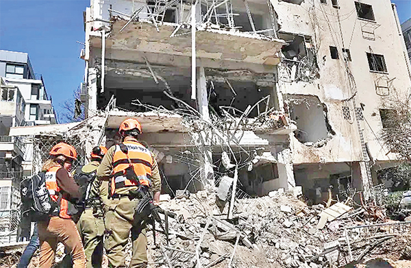 তেলআবিবে হামলার পর একটি বিধ্বস্ত স্থানে জড়ো হয়েছেন জরুরি পরিষেবা কর্মীরা। এ হামলায় শক্তিশালী ক্ষেপণাস্ত্র ব্যবহার করে ইরান। গতকালের ছবি * আলজাজিরা
