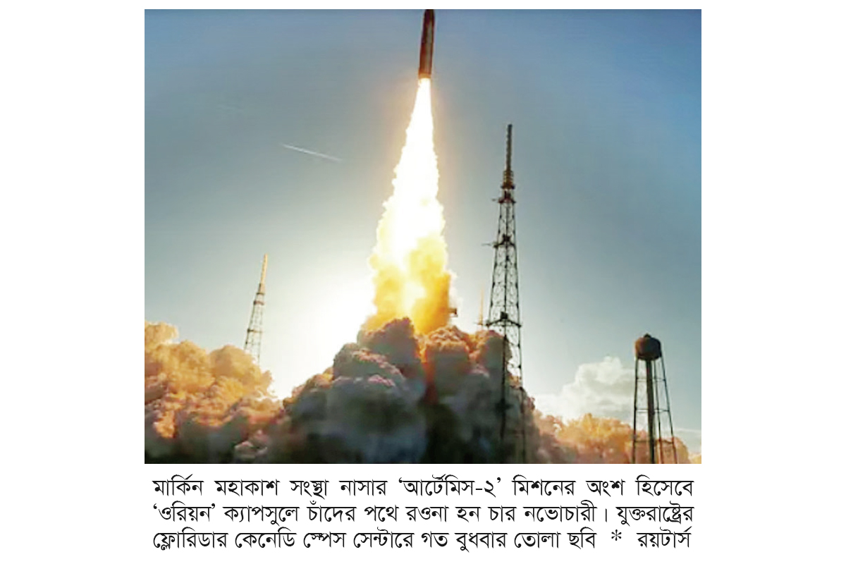 ৫৩ বছরের বেশি সময় পর আবারও চাঁদের উদ্দেশে নভোচারী পাঠাল যুক্তরাষ্ট্র। যুক্তরাষ্ট্রের স্থানীয় সময় গত বুধবার মার্কিন মহাকাশ সংস্থা নাসার ‘আর্টেমিস-২’ মিশনের চার নভোচারী কেনেডি স্পেস সেন্টার থেকে ‘ওরিয়ন’ ক্যাপসুলে চড়ে এ ঐতিহাসিক যাত্রা শুরু করেন।